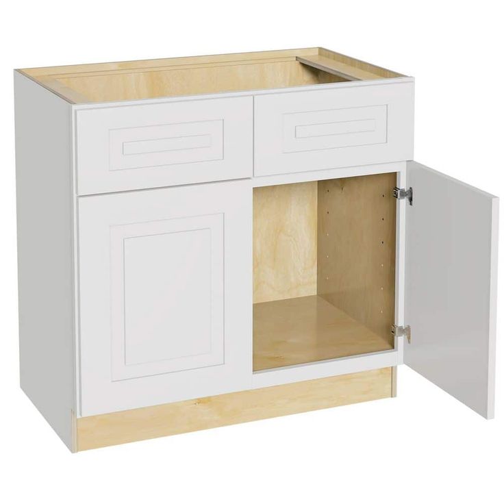 The Grayson 36-Inch Sink Base Cabinet in Pacific White offers a perfect blend of style and functionality for your kitchen. With its sturdy plywood construction and elegant shaker design, it promises durability while enhancing your space with its fresh, bright finish. Enjoy the convenience of soft-close doors and a configuration built to accommodate your sink efficiently.
