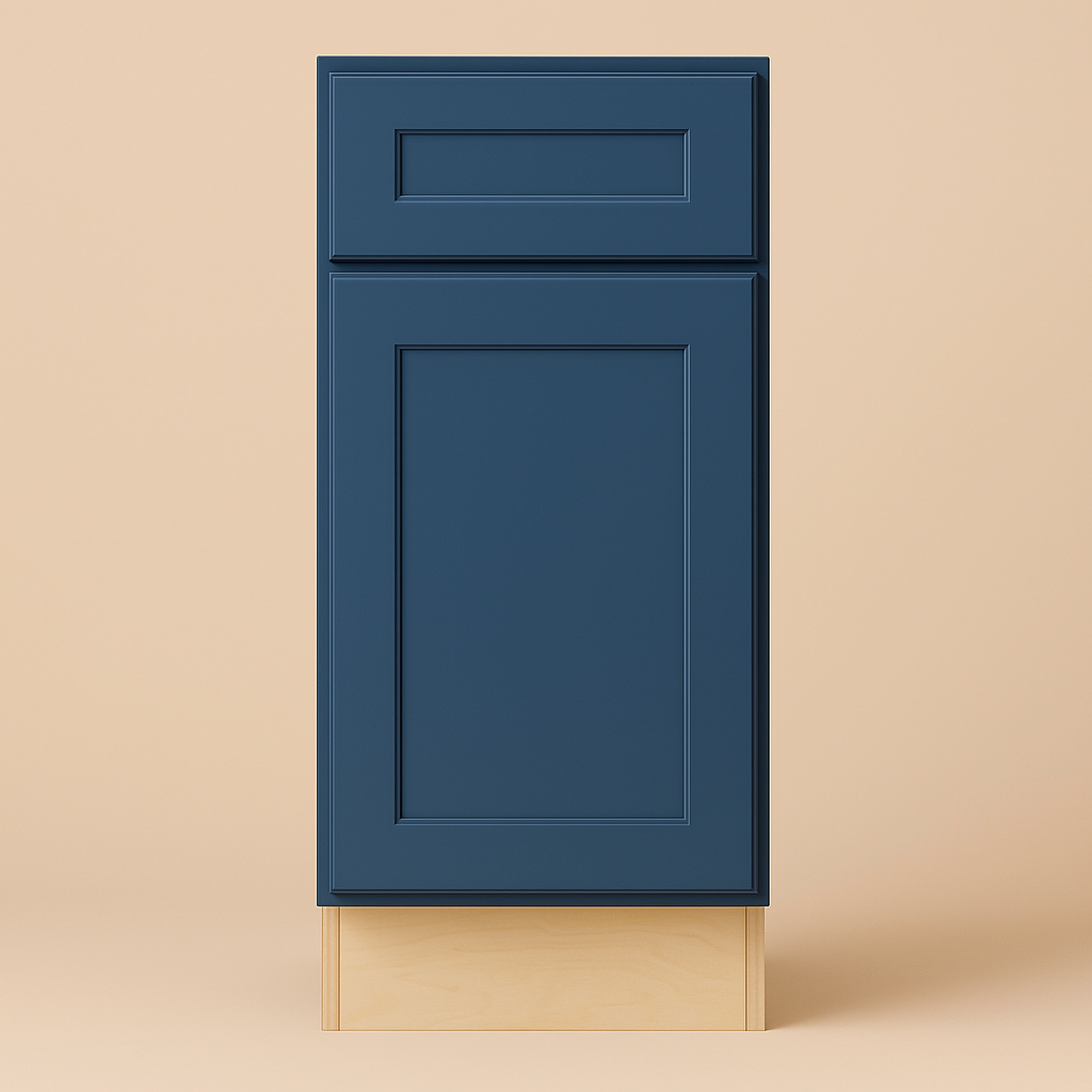 The Mythic Blue Base Kitchen Cabinet by Home Decorators Collection combines durable plywood construction with a bold, painted finish. Featuring soft-close doors and shaker-style design, it offers both functionality and timeless elegance.