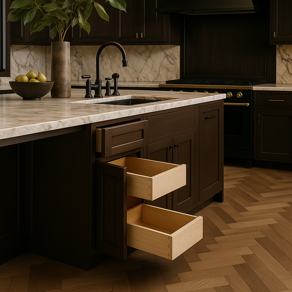 Kitchen Cabinet Features Adjustable Shelves,Dove Tail Drawers,Finished Interior,Full Depth Shelves,Full Extension Drawers,Modular,Soft Close Doors,Soft Close Drawers,Solid Wood,Structural Toe Kicks Included,Upgraded Drawer Material