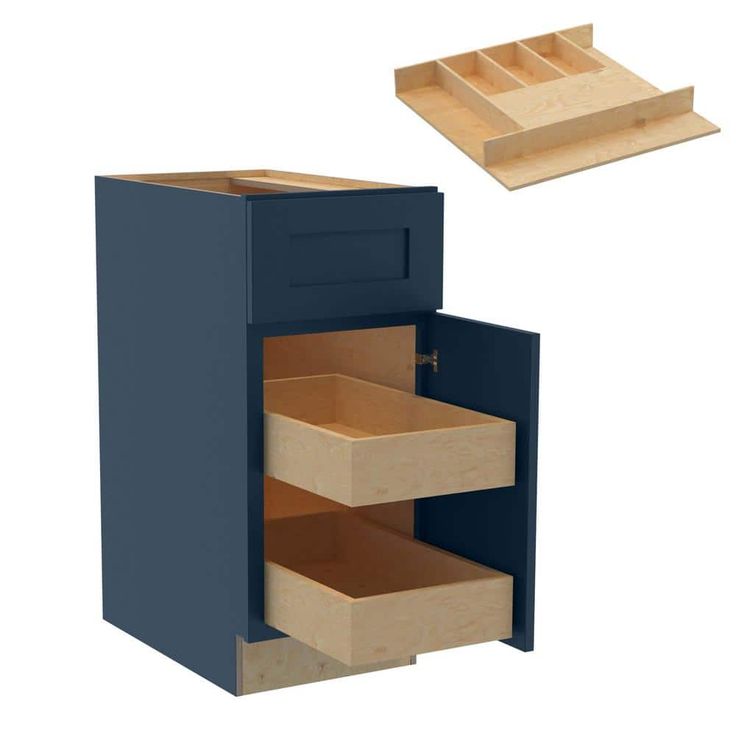 Home Decorators Collection Newport 15 in. W x 24 in. D x 34.5 in. H Assembled Plywood Base Kitchen Cabinet in Mythic Blue with 2ROT Cutlery RH