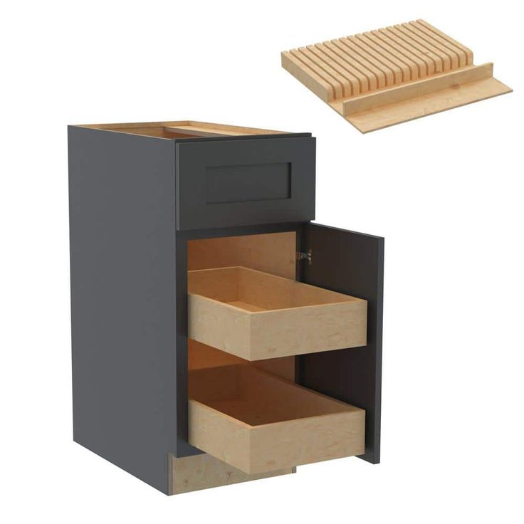 Elevate your kitchen with the Home Decorators Collection Newport Base Cabinet, featuring a stunning Mythic Blue finish. This 15 in. plywood cabinet pairs durability with stylish functionality, complete with soft close roll-out trays and a built-in knife block to optimize storage and efficiency.