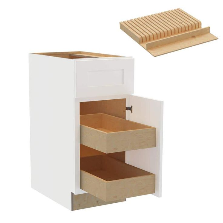15 in. Pacific White Base Kitchen Cabinet with Knife Block