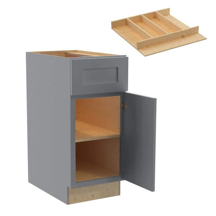 Home Decorators Collection Newport 15 in. W x 24 in. D x 34.5 in. H Assembled Plywood Base Kitchen Cabinet in Pearl Gray with Utility Soft Close RH