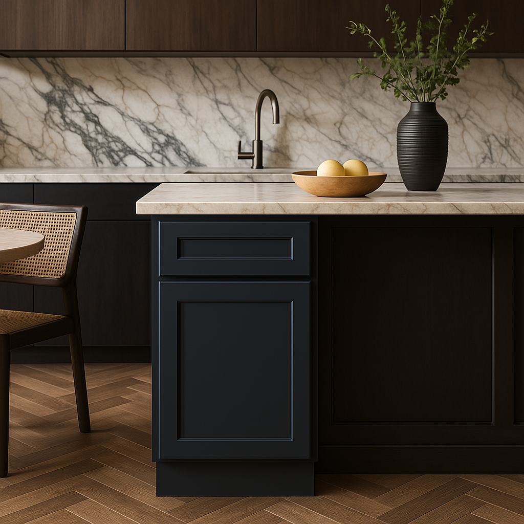 The Newport Deep Onyx Kitchen Cabinet is a masterpiece of modern design, blending functionality with aesthetic appeal. Its deep onyx finish exudes sophistication, while the shaker-style doors add a touch of timeless elegance. This cabinet is perfect for pairing with stainless steel appliances or contrasting light countertops to create a striking visual impact. A must-have for those seeking to elevate their kitchen space with a blend of luxury and practicality.