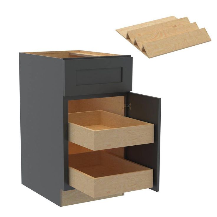 • Features: Includes soft-close cabinet doors, two roll-out trays, and a versatile spice tray insert.
