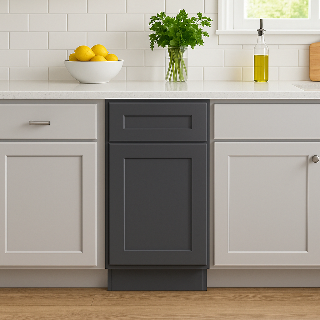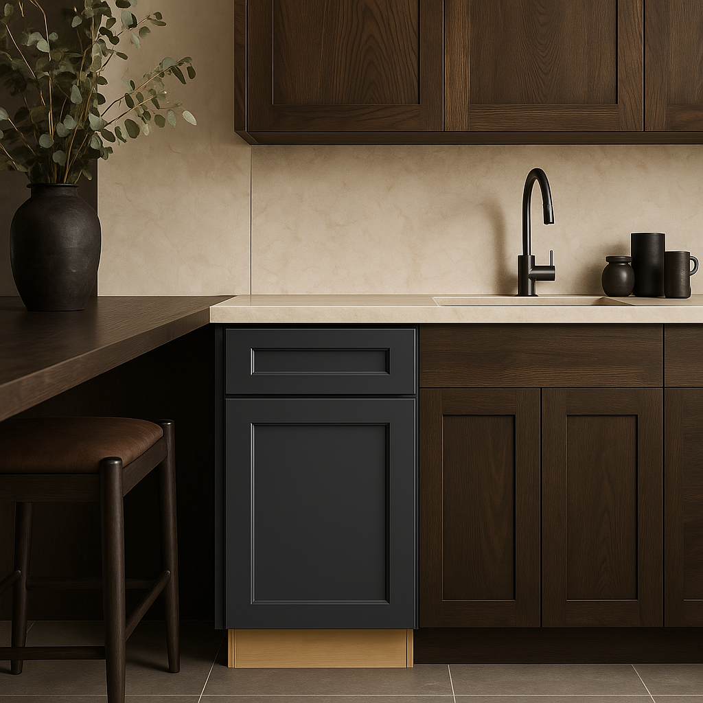 - Elegant Design: Shaker-style doors with a deep onyx painted finish for a bold and sophisticated look.