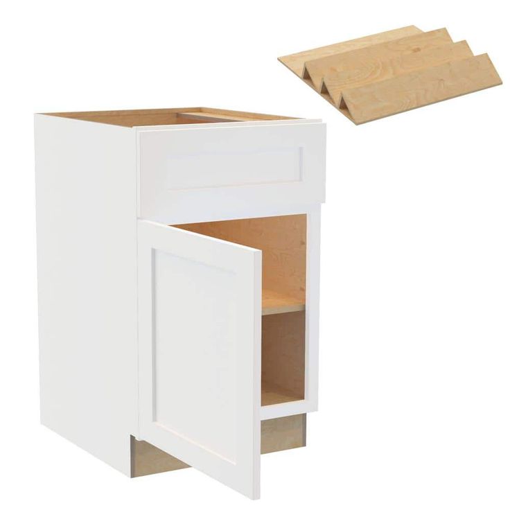 • Design: Chic shaker-style doors with a Pacific White finish for a clean, timeless look.