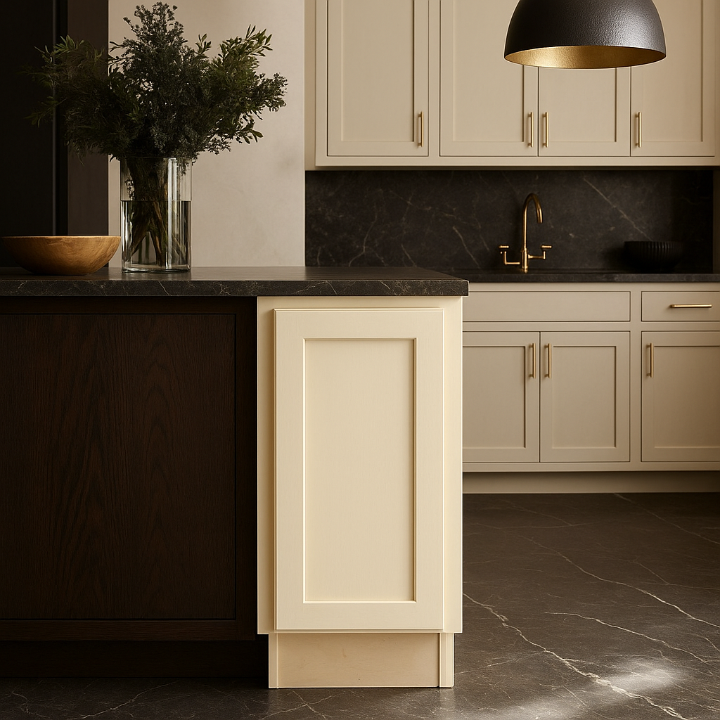 - Elegant Design: Shaker-style doors with recessed panels and a blended cream finish.