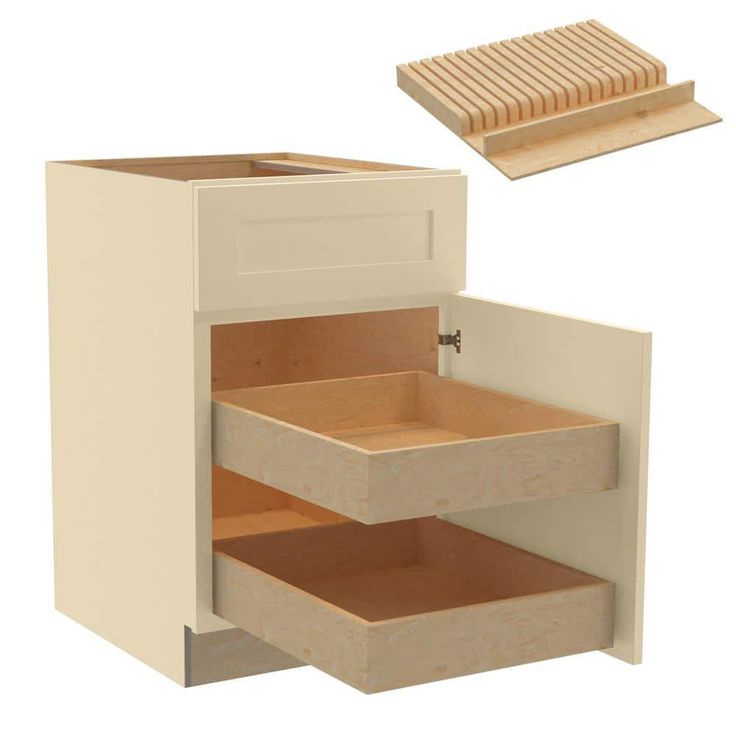- Storage: Includes 2 soft close roll out trays and a knife block for easy access and organization.