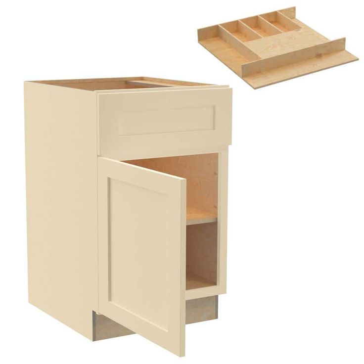The Newport Base Kitchen Cabinet from Home Decorators Collection offers durable plywood construction with a sophisticated blended cream finish. With its shaker-style MDF doors, soft-close functionality, and full-depth shelving, it's designed for both elegance and practicality in your kitchen space.