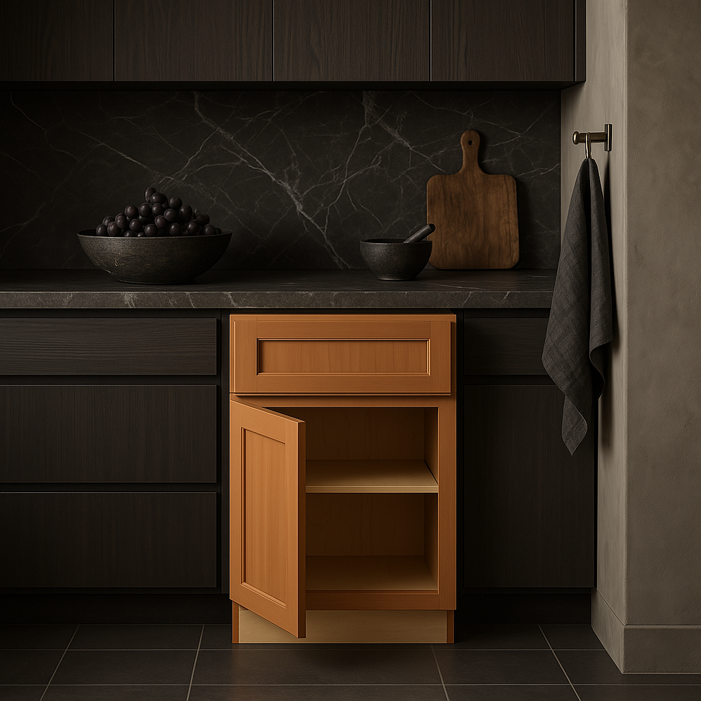 The Newport Cinnamon Base Kitchen Cabinet combines durable all-plywood construction with a rich Cinnamon finish, offering both style and functionality. Featuring soft-close technology and adjustable shelves, this cabinet is perfect for modern kitchens.