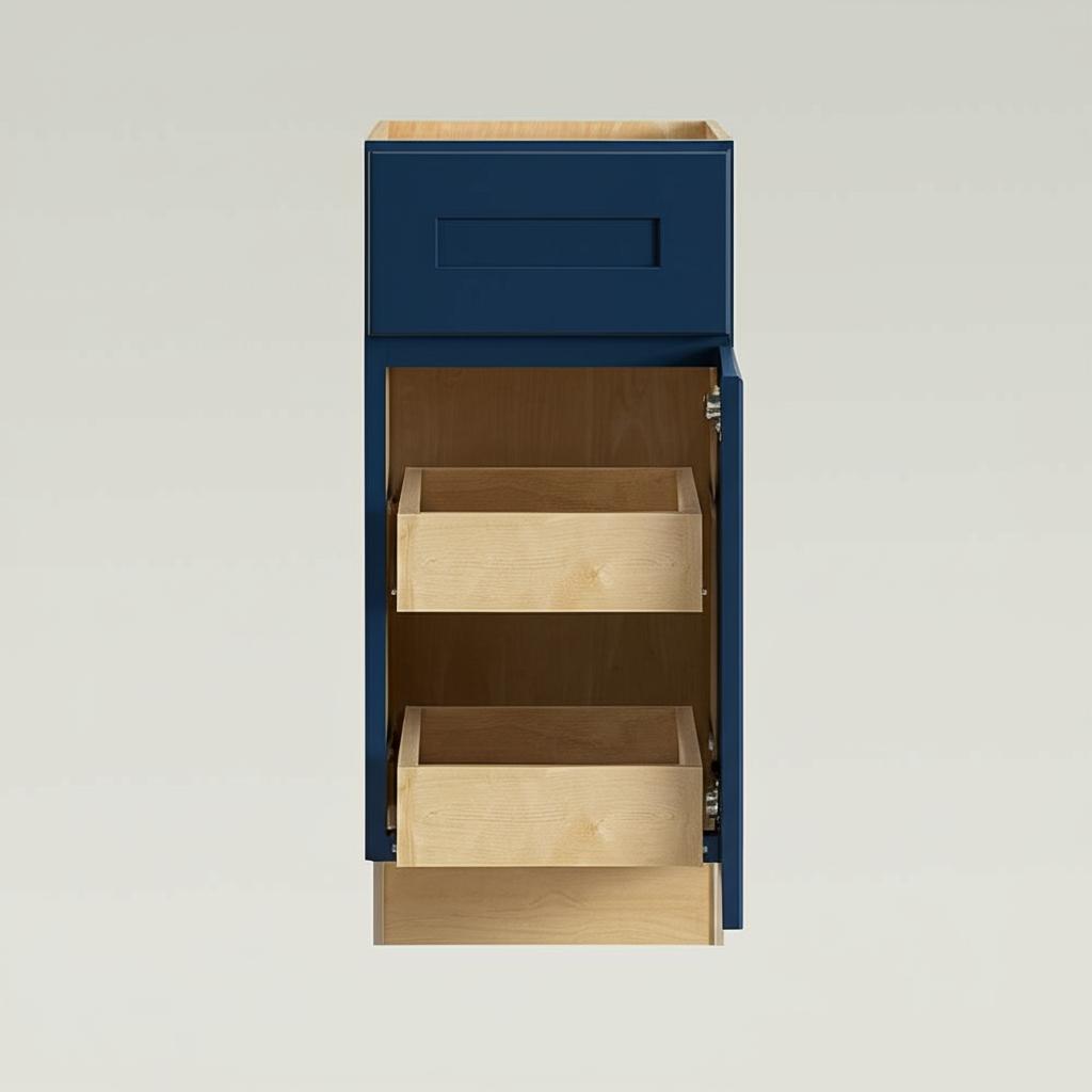 The Mythic Blue Kitchen Cabinet transforms your culinary space into a haven of sophistication and functionality. Its bold Shaker-style design harmonizes with modern and classic aesthetics, while the soft-close features add a touch of luxury. Pair it with brass hardware for a striking contrast that enhances its timeless appeal. This cabinet is not just a storage solution but a statement piece that elevates your kitchen's ambiance.