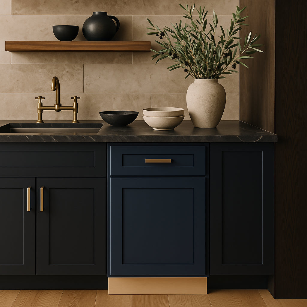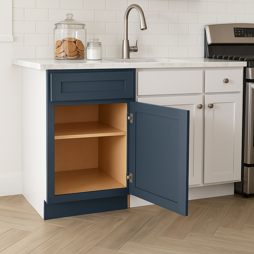 • Stylish Design: Mythic Blue shaker-style doors with a recessed center panel.