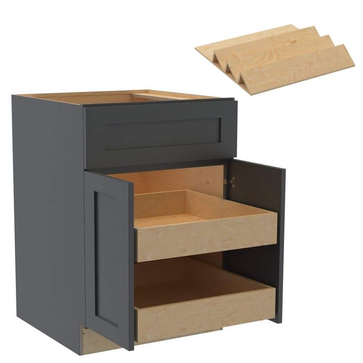 Elevate your kitchen with the Home Decorators Collection Newport Base Kitchen Cabinet. Featuring durable all-plywood construction and a sleek Deep Onyx finish, this cabinet combines classic shaker-style design with modern functionality. Enjoy enhanced storage with soft-close rollout spice trays, making organization effortless and efficient.