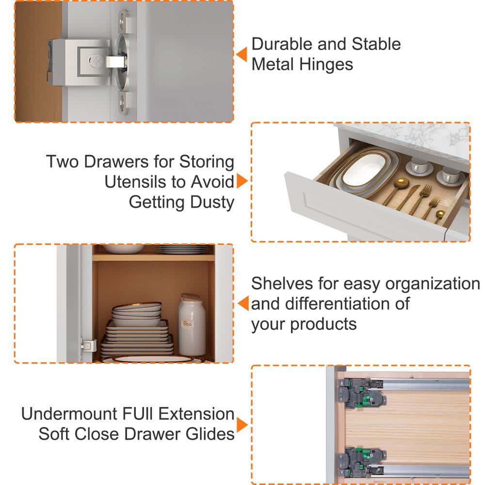 Kitchen Cabinet Features Adjustable Shelves,Full Depth Shelves,Soft Close Doors,Soft Close Drawers
