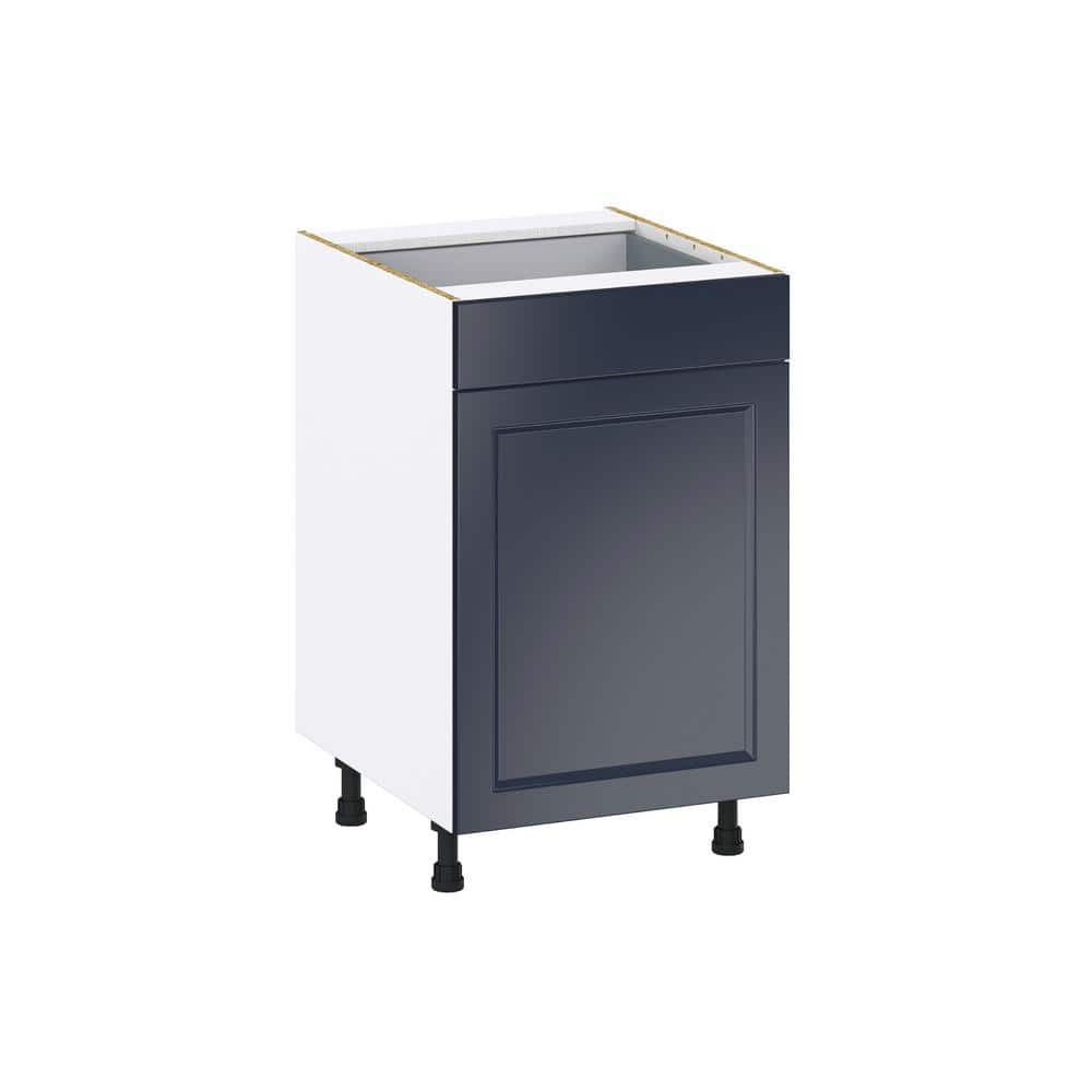 The Devon Blue Shaker Base Kitchen Cabinet by J COLLECTION offers a chic and functional upgrade to any kitchen space. Its frameless design provides seamless access to stored items, while the painted blue finish enhances your décor with a touch of modern elegance. Pre-installed adjustable legs ensure quick and easy installation, making this fully assembled piece a practical choice for both professionals and DIYers.