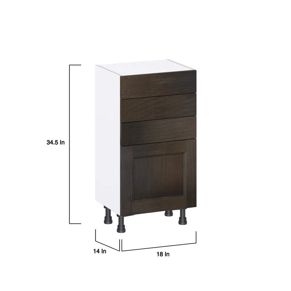 J COLLECTION Lincoln Chestnut Solid Wood Assembled Shallow Base Kitchen Cabinet with 3 Drawers (18 in. W x 34.5 in. H x 14 in. D)