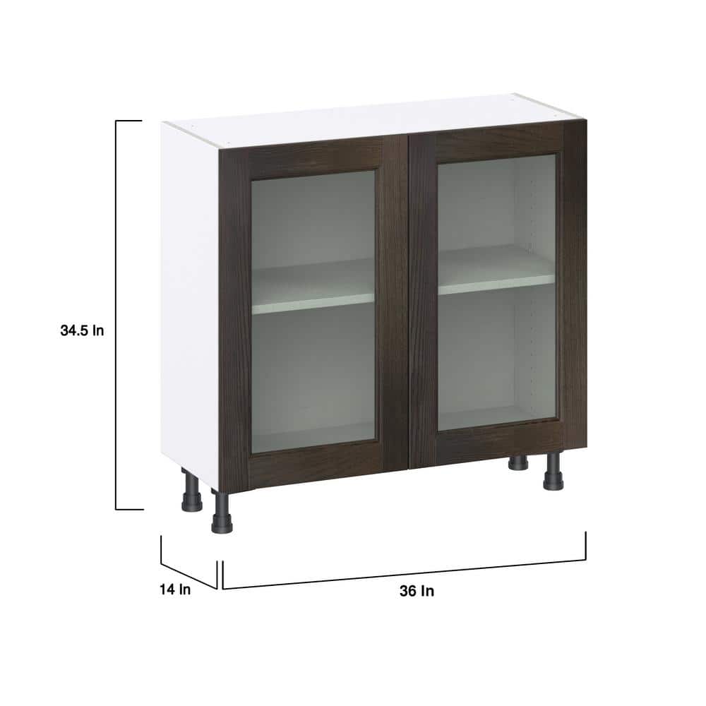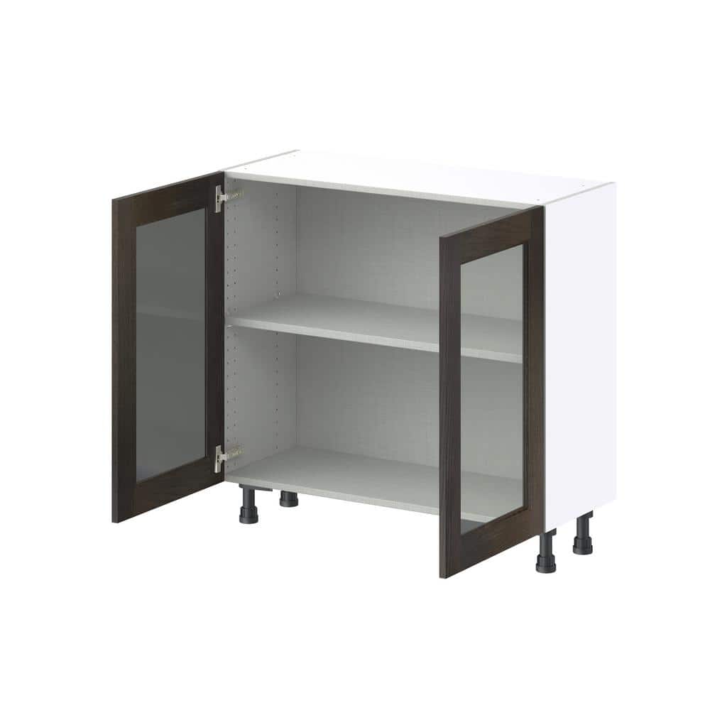 J COLLECTION Lincoln Chestnut Solid Wood Assembled Shallow Base Kitchen Cabinet with Glass Door (36 in. W x 34.5 in. H x 14 in. D)