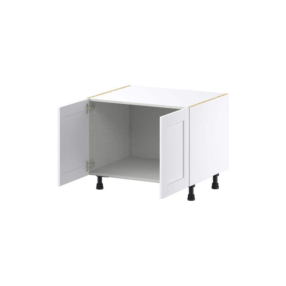 Transform your kitchen into a bastion of elegance and function with the J COLLECTION Bright White Shaker Apron Front Sink Base. This piece radiates effortless style with its pristine white finish and modern shaker design. Pair it with bold, contrasting countertops to create a striking, dynamic visual effect. It's more than just a cabinet; it's a statement of luxury crafted with impeccable attention to detail.