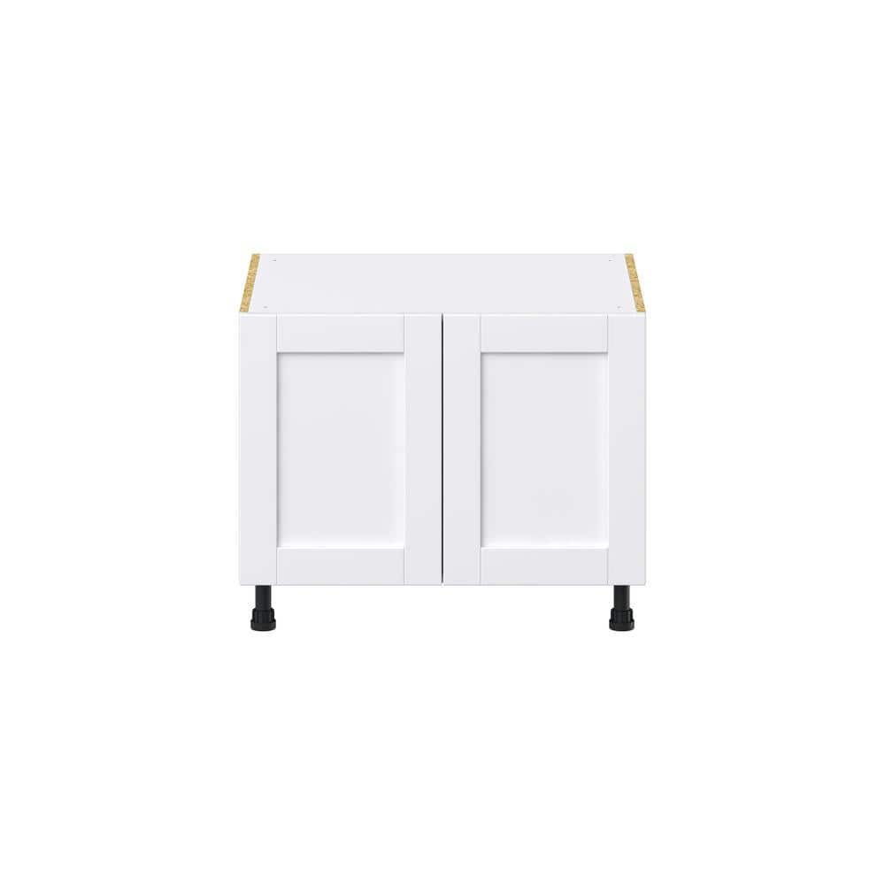 Upgrade your kitchen with the Mancos Bright White Shaker Apron Front Sink Base Cabinet by J COLLECTION. This fully assembled cabinet combines elegant design with practical features, making it an ideal choice for modern kitchens. Its durable construction and easy-access frameless design ensure it will be a beautiful and functional addition to any home.