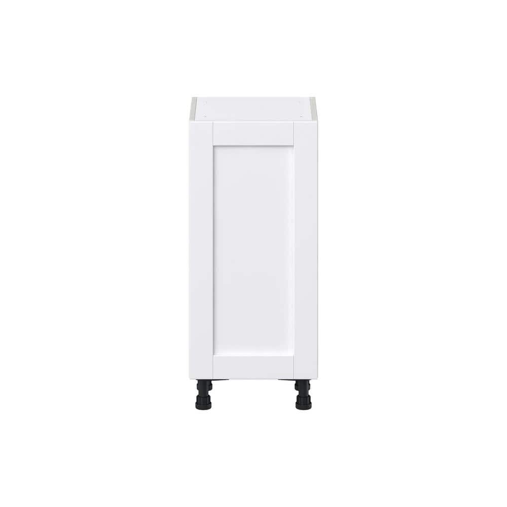 Create a seamless, functional kitchen with the J COLLECTION Mancos Bright White Shaker Base Cabinet. This cabinet's frameless design offers unobstructed access and an elegant finish that complements any kitchen décor. Durable and stylish, it features soft-close drawers that ensure a peaceful kitchen environment.