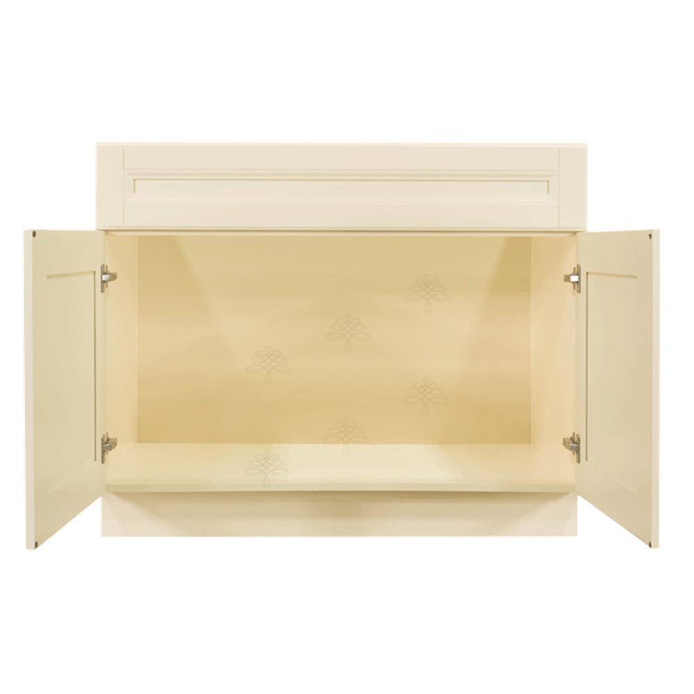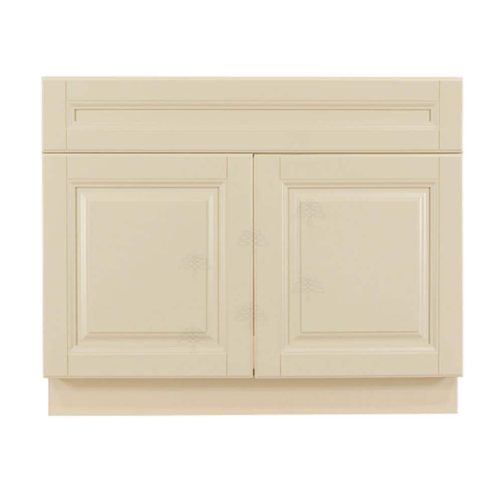 LIFEART CABINETRY Oxford Creamy White Plywood Raised Panel Stock Assembled Sink Base Kitchen Cabinet (39 in. W x 34.5 in. H x 24 in. D)