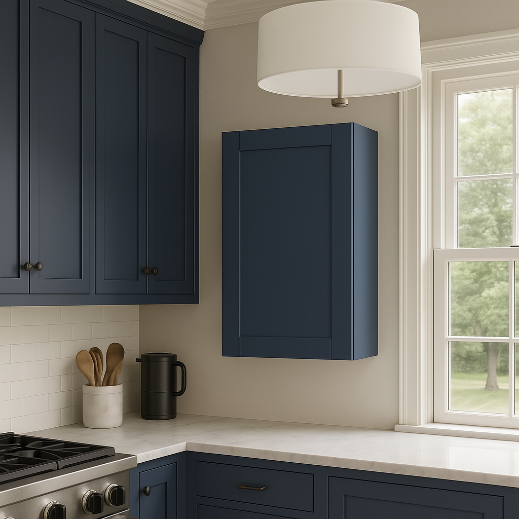 Upgrade your kitchen with the stylish and durable Valencia Blue Shaker Wall Cabinet today!