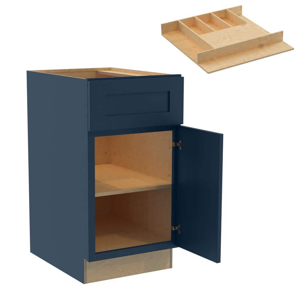 Newport 18 in. W x 24 in. D x 34.5 in. H Assembled Plywood Base Kitchen Cabinet in Mythic Blue with Cutlery Soft Cls RH