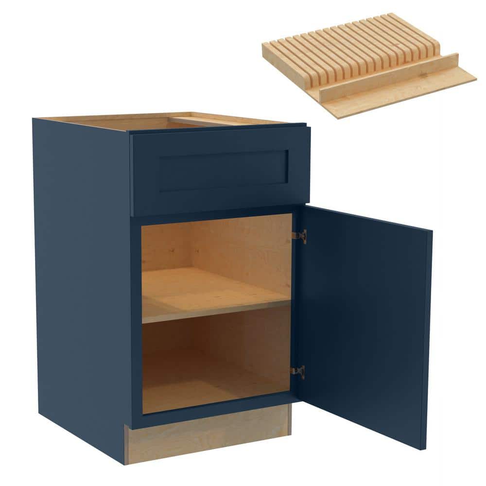 Mythic Blue Kitchen Base Cabinet with Knife Block