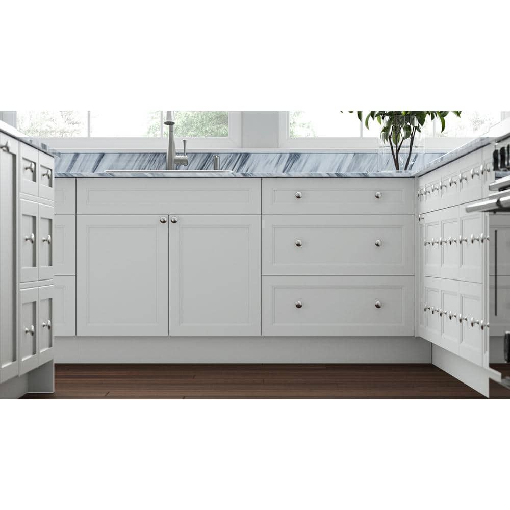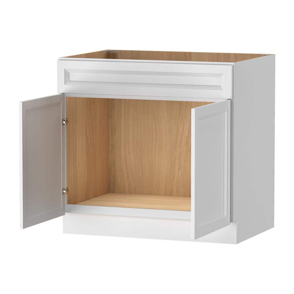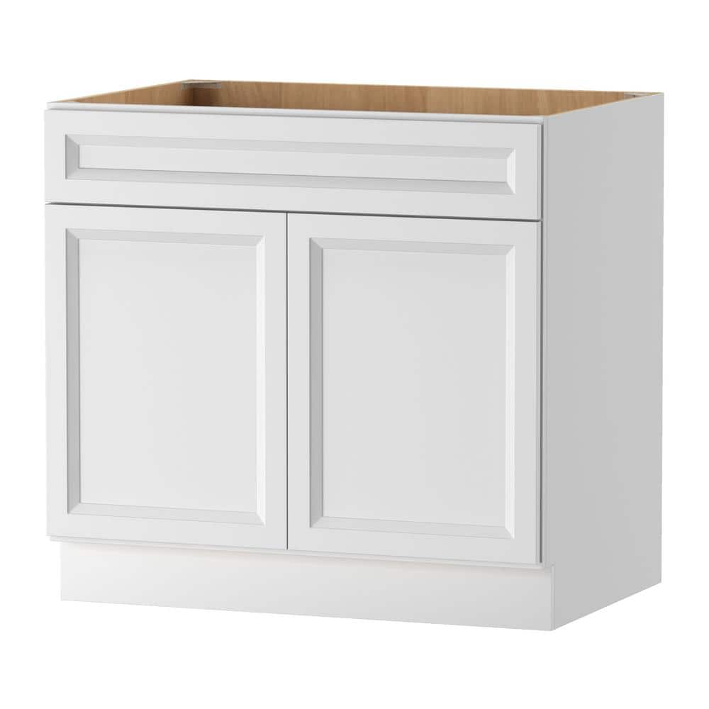 PELHAM & WHITE Keyport Shaker 36 in. W x 24 in. D x 34.5 in. H Plywood Tool-Free Ready To Assemble Sink Base Kitchen Cabinet in White