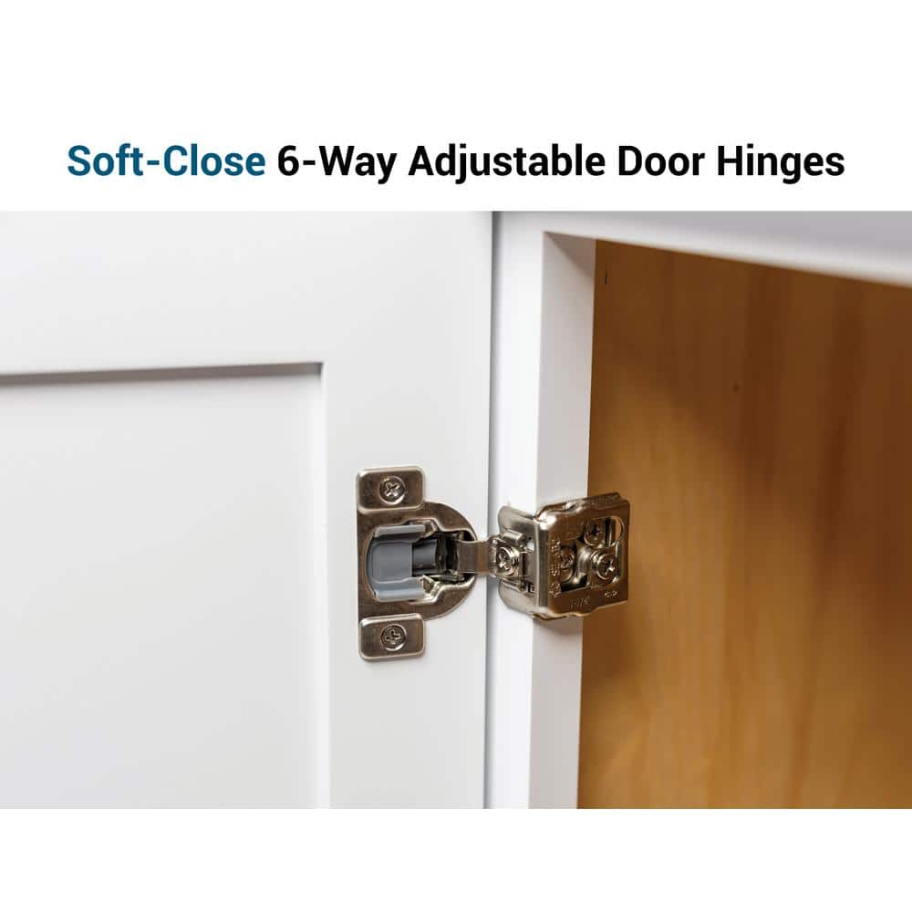 A: The soft close doors come with euro-style, 6-way adjustable hinges that ensure smooth and silent closing, preventing slamming and wear over time.