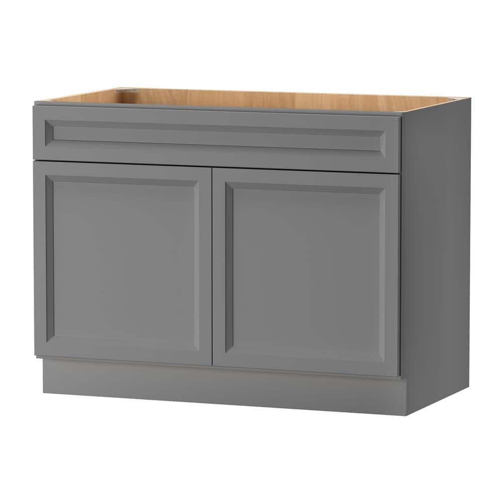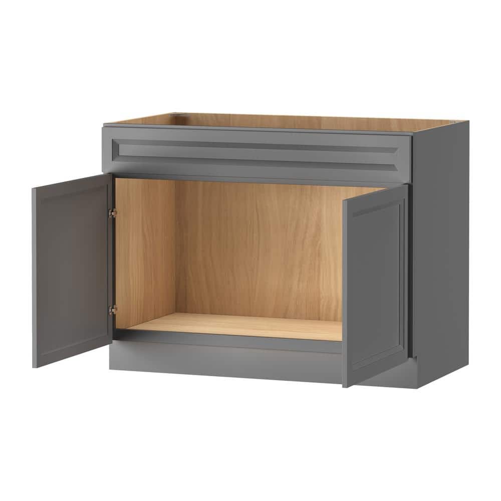 PELHAM & WHITE Keyport Shaker 45 in. W x 24 in. D x 34.5 in. H Charcoal Plywood Tool-Free Ready To Assemble Sink Base Kitchen Cabinet