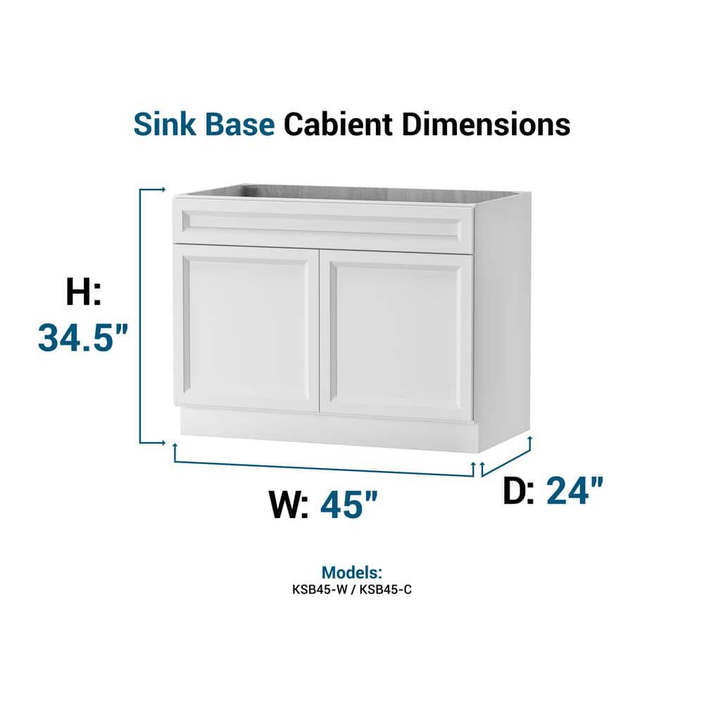 A: This cabinet accommodates standard sinks up to 42 inches wide, excluding farmhouse apron sinks.