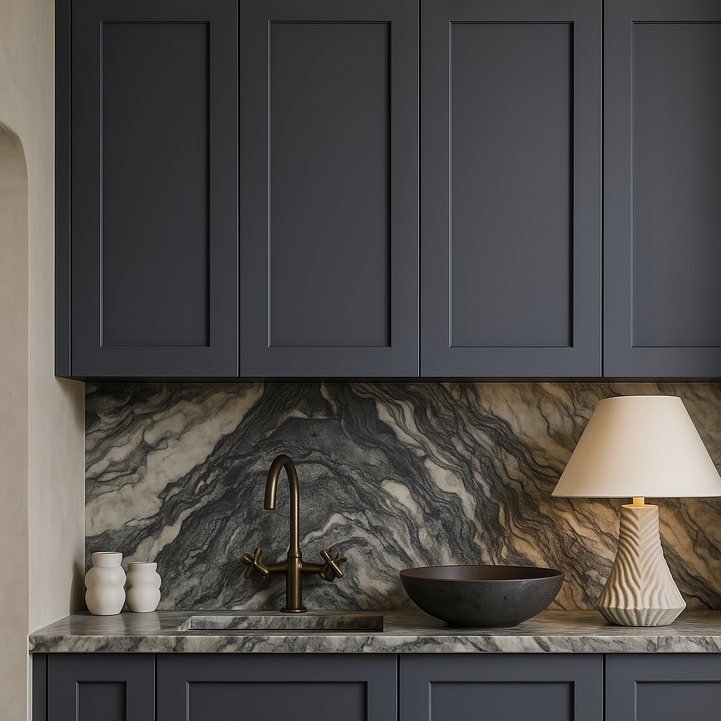 The Richmond Venetian Onyx Wall Kitchen Cabinet is a masterpiece of modern design, blending deep gray tones with a sleek shaker-style aesthetic. Its thermofoil finish adds a touch of sophistication, while the contrasting white back panel introduces a unique architectural detail. Style it with brushed nickel hardware to create a harmonious and luxurious kitchen space. This cabinet is not just storage—it's a statement of refined taste.