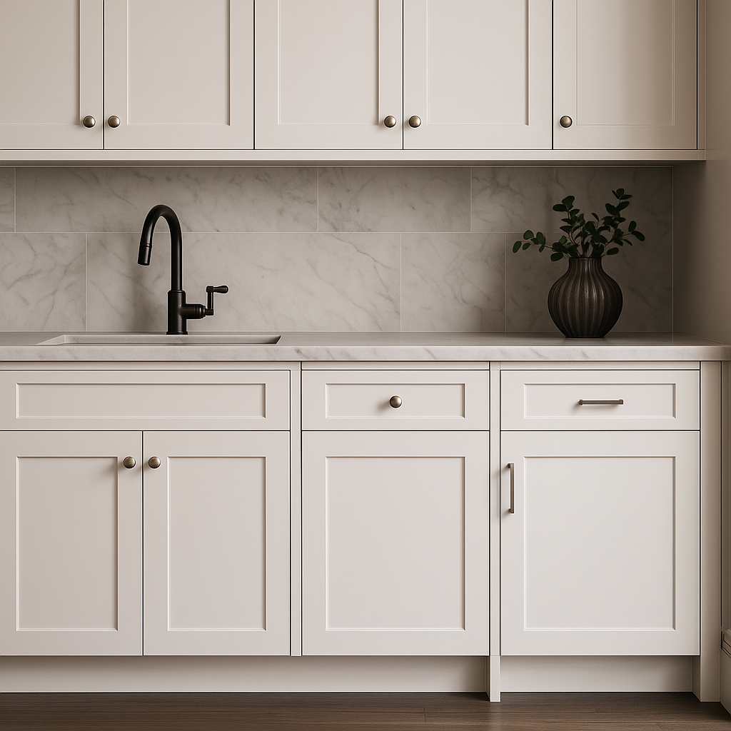 - Classic Design: Shaker style in crisp white finish blends with modern and transitional interiors.