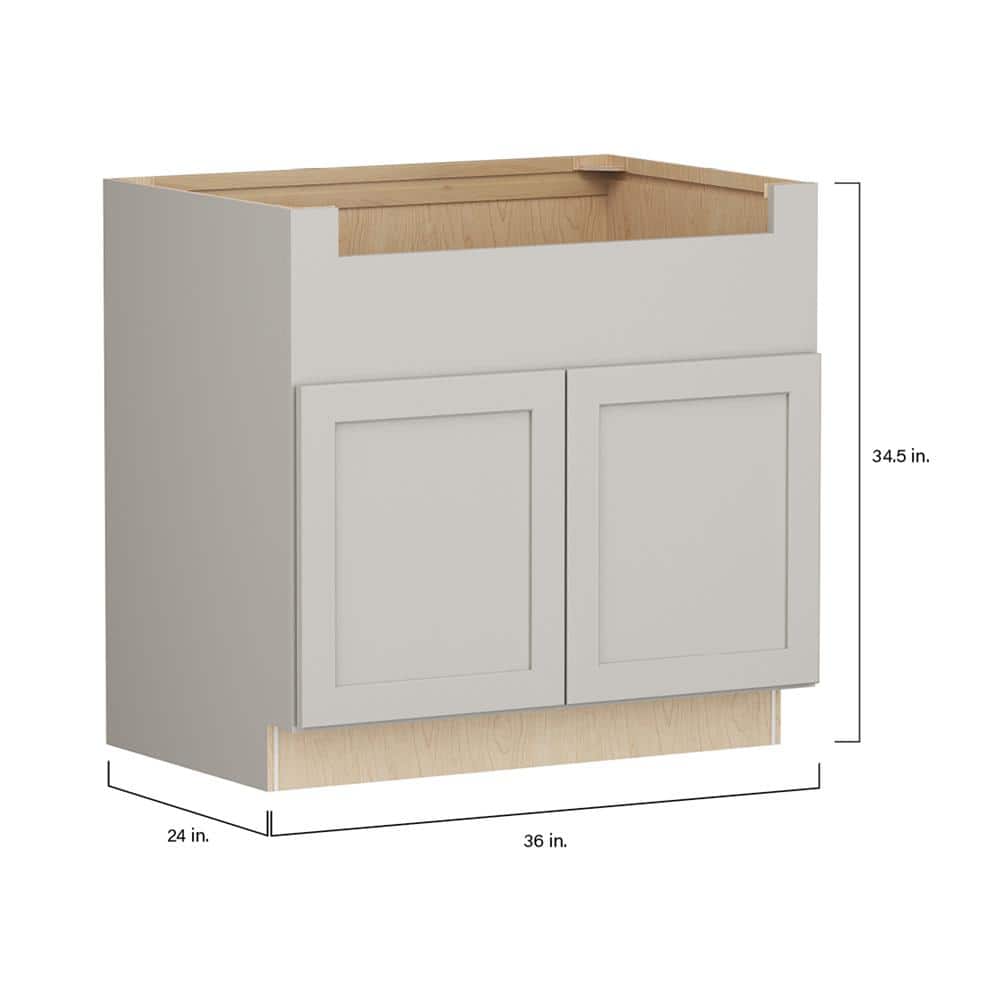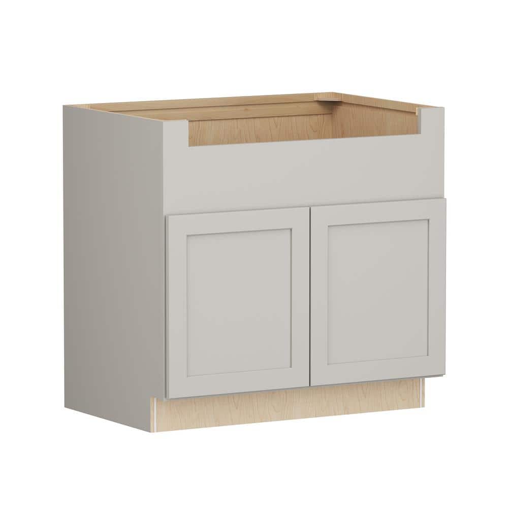 SIMPLY WOODMARK PRO Shaker Full Overlay 36 in. W x 24 in. D x 34.5 in. H Plywood Assembled Deep Sink Base Kitchen Cabinet in Stone Gray