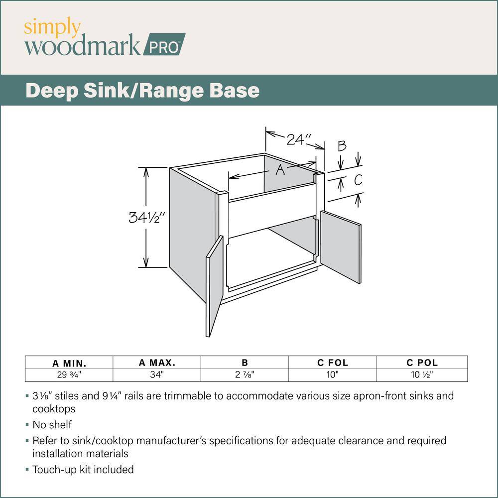 Upgrade your kitchen with the SIMPLY WOODMARK PRO Shaker Full Overlay Deep Sink Base Cabinet in Stone Gray. Constructed from durable plywood, this cabinet offers a sleek, modern design with a beautiful painted finish. The Full Overlay Shaker style doors provide a modern look while the CushionClose hinges ensure silent, smooth operation.