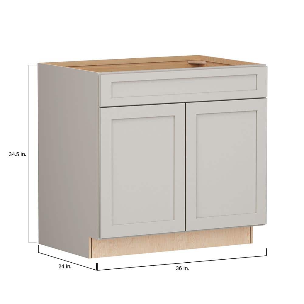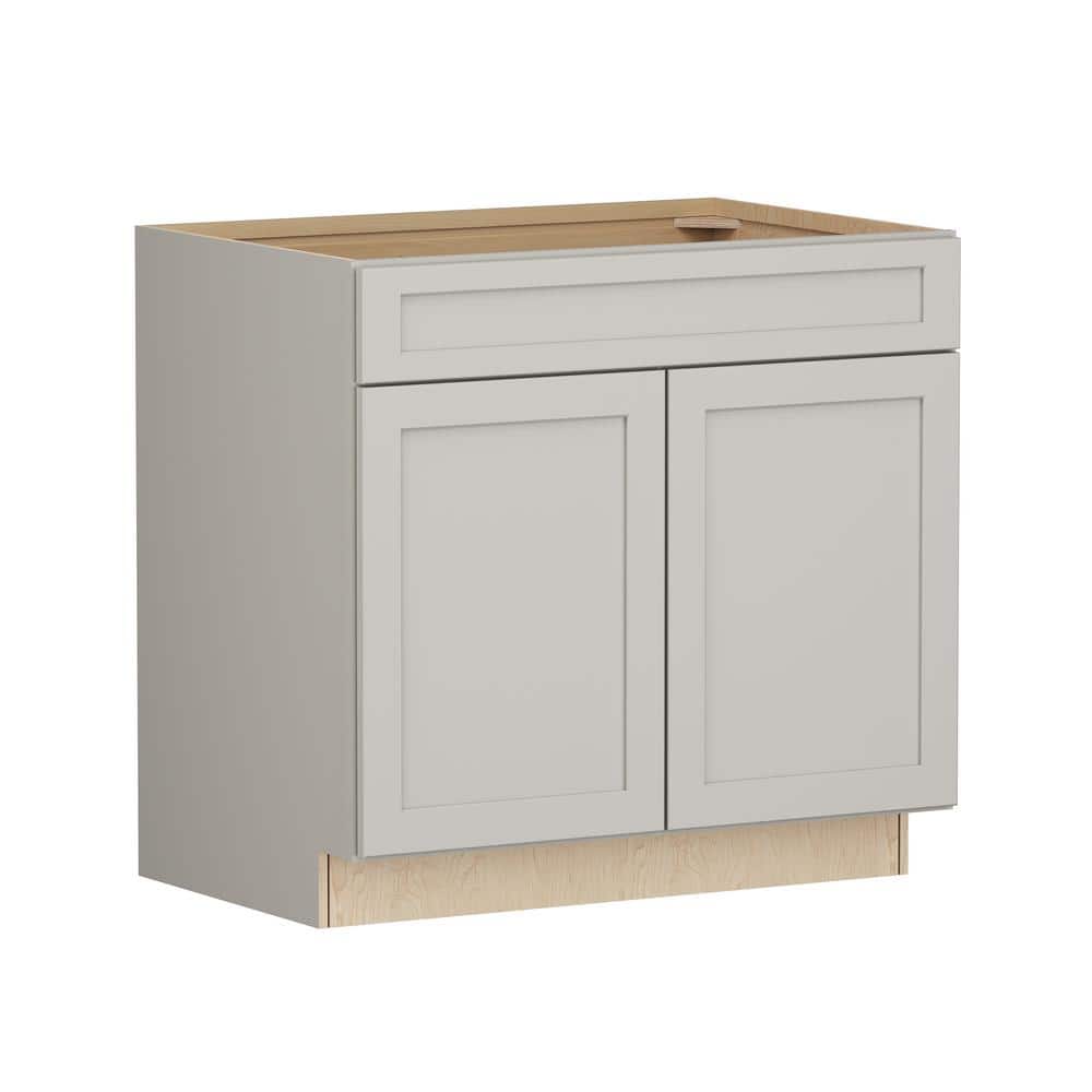 SIMPLY WOODMARK PRO Shaker Full Overlay 36 in. W x 24 in. D x 34.5 in. H Plywood Assembled Sink Base Kitchen Cabinet in Stone Gray