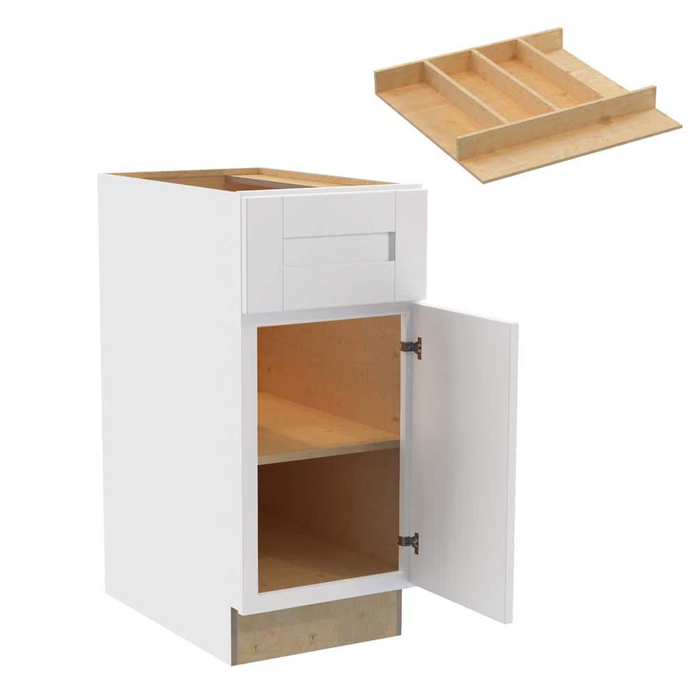 Washington 15 in. W x 24 in. D x 34.5 in. H Vesper White Plywood Shaker Assembled Base Kitchen Cabinet Rt Utility Tray
