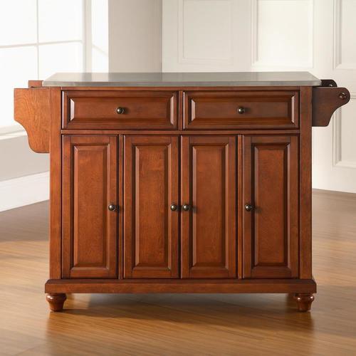 Stainless steel top Solid hardwood and veneer construction Hand rubbed, multi-step finish Beautiful raised panel doors