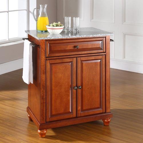 The beautiful raised panel doors and drawer fronts provide the ultimate in style to dress up any culinary space The deep drawer is great for anything from utensils to storage containers Behind the doors is an adjustable shelf and an abundance of storage space Solid granite countertop Features built-in towel bars Decorative classic cherry finish 90-day limited warranty
