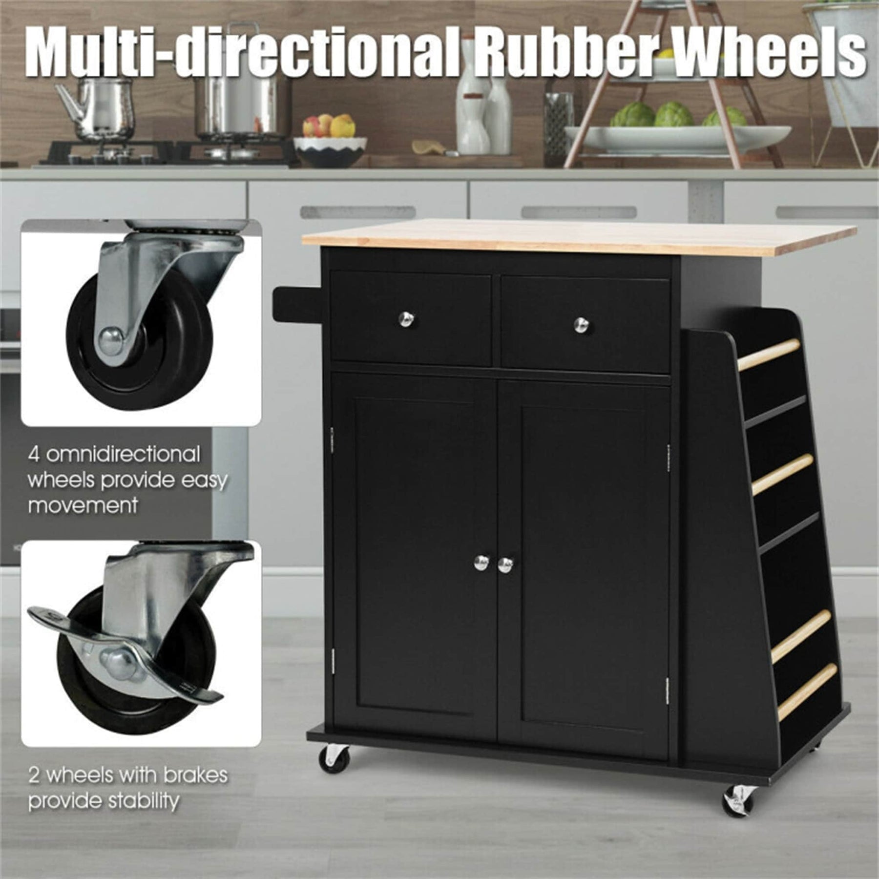 BABOOM Black Mdf Base with Wood Top Rolling Kitchen Island (18-in x 34.5-in x 35.5-in)