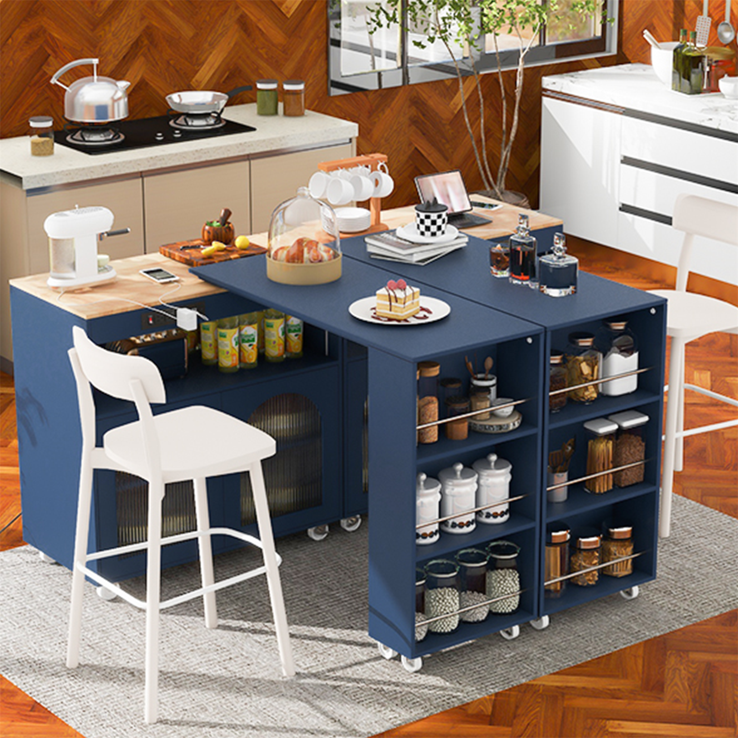 Discover the limitless possibilities of your kitchen layout with the BABOOM Blue MDF & Wood Rolling Kitchen Island – order now and start creating your dream space.