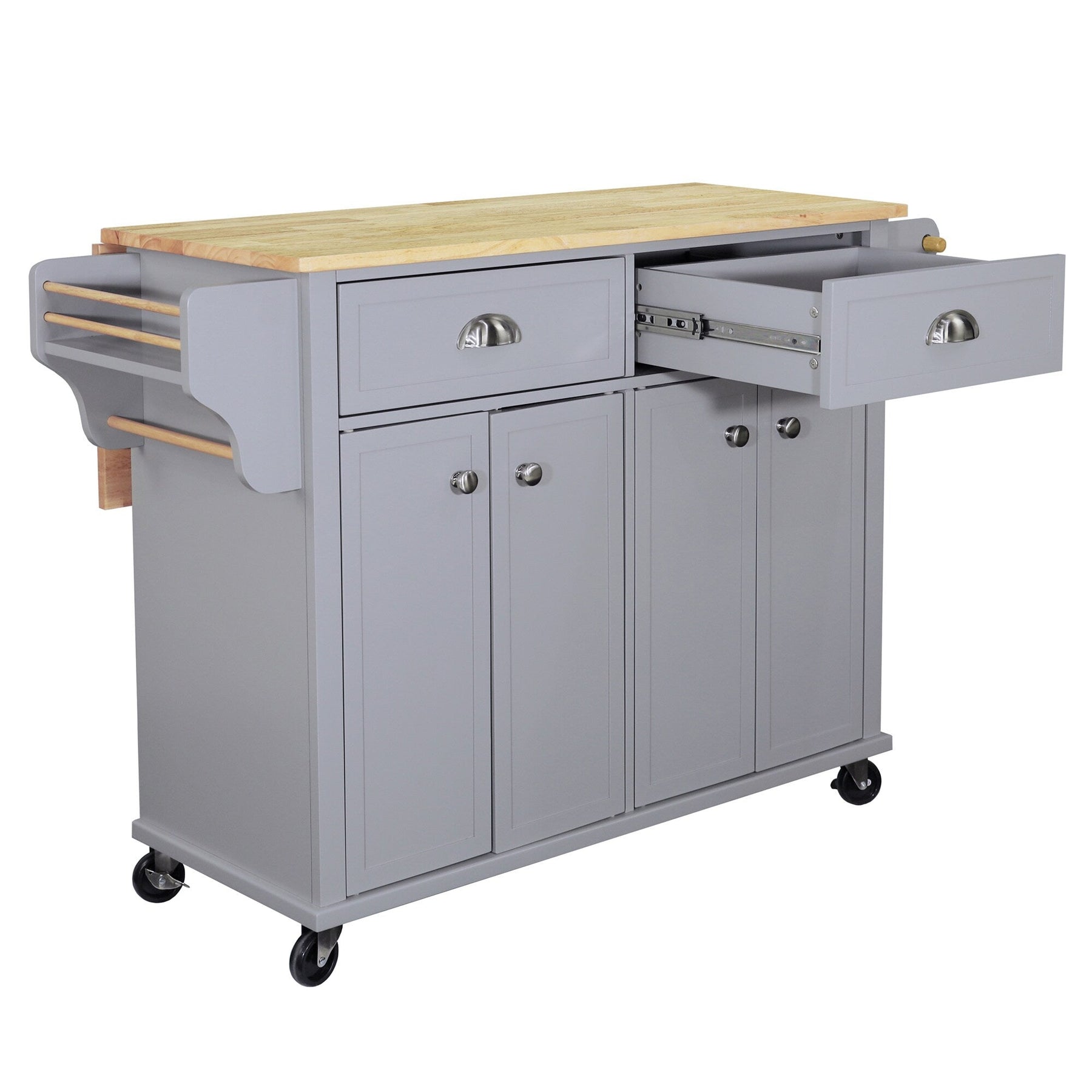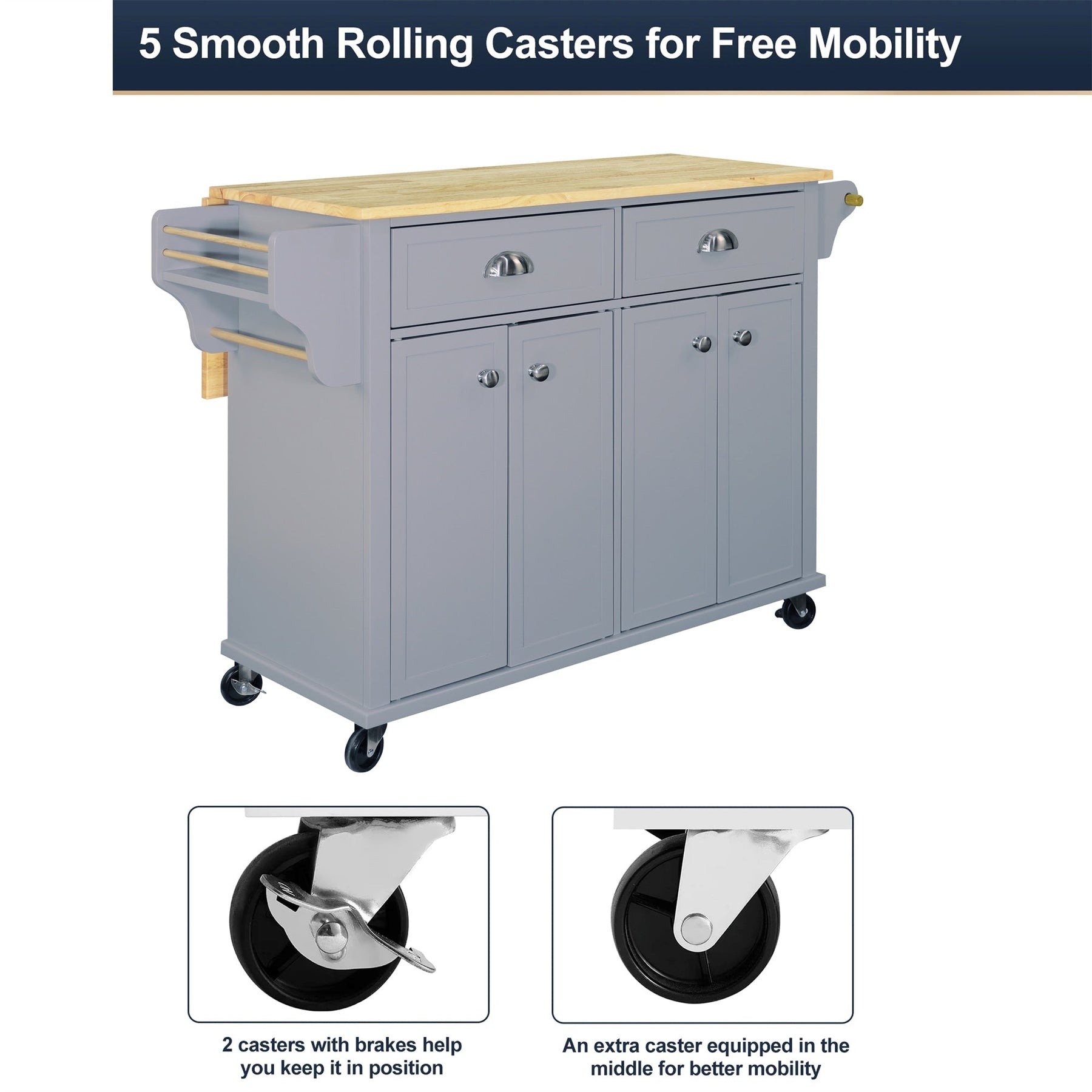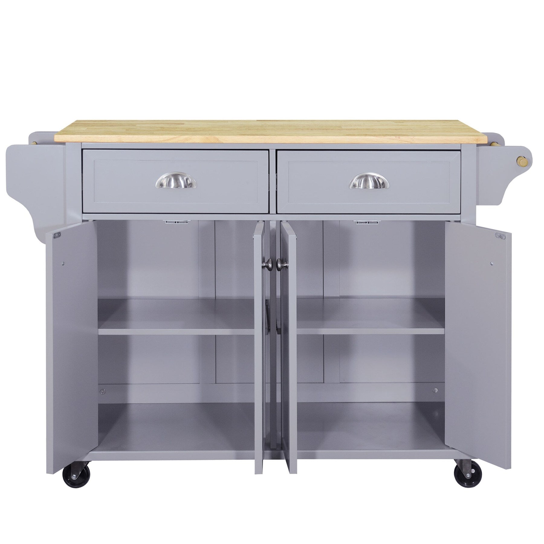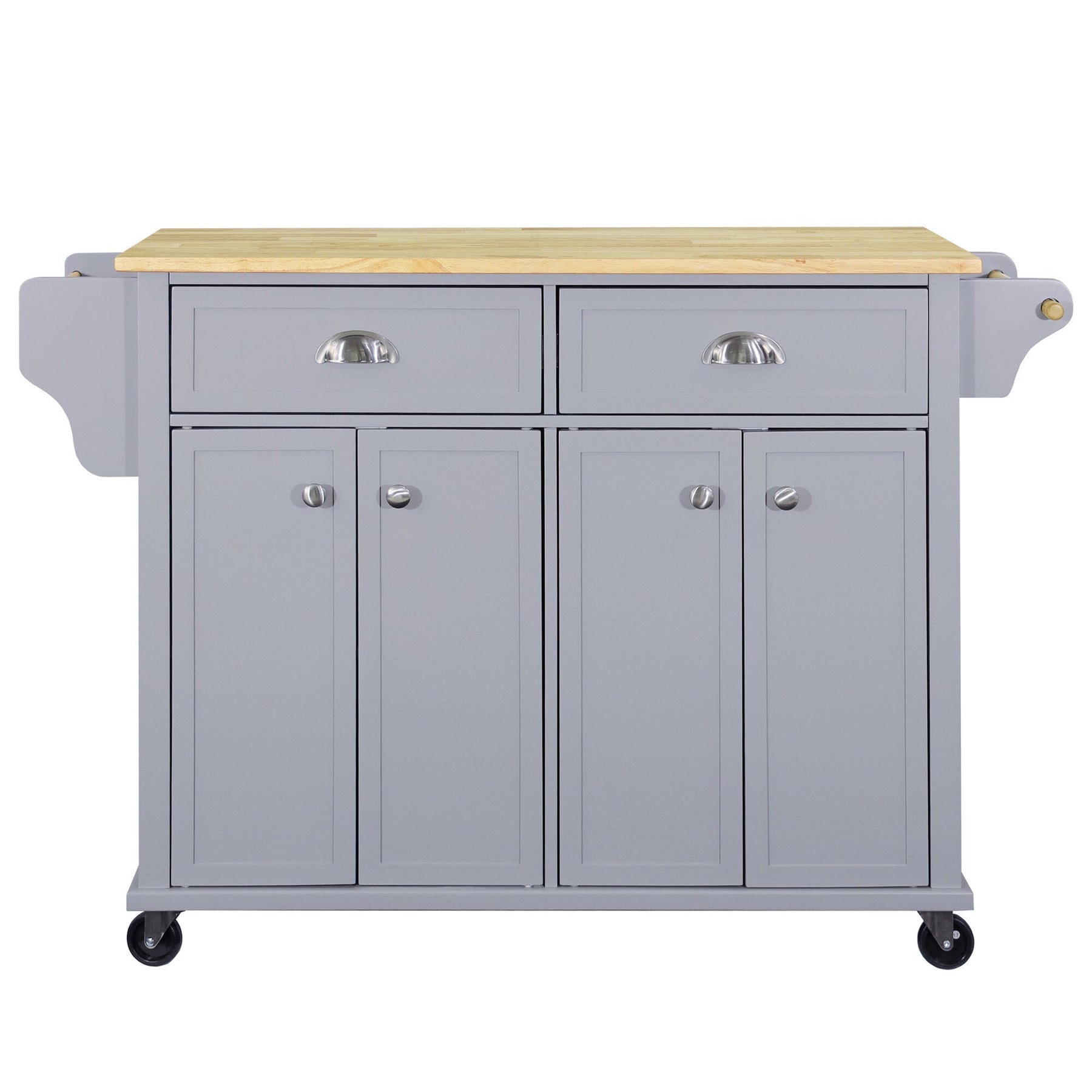 BABOOM Gray MDF Base & Wood Top Rolling Kitchen Island