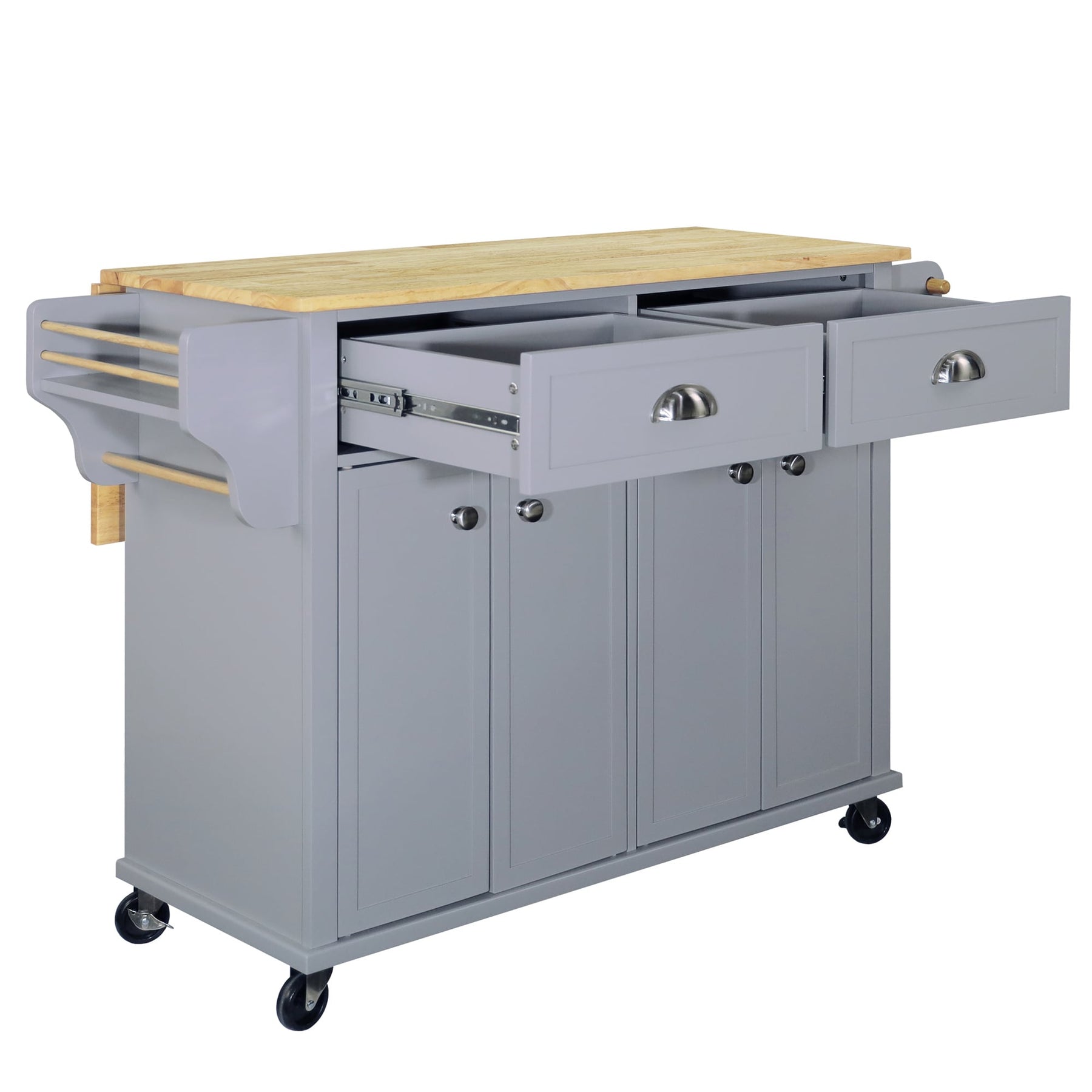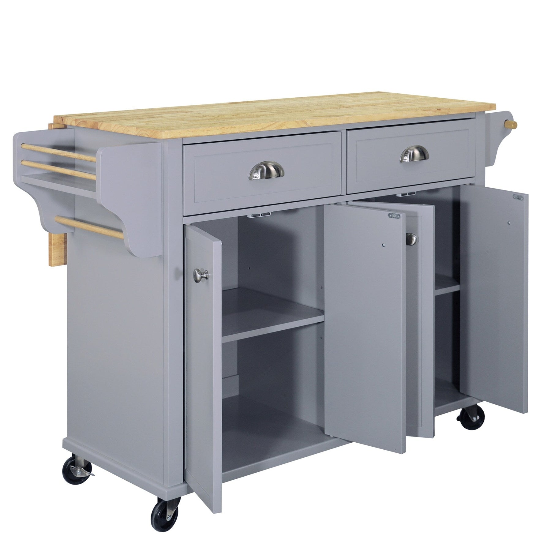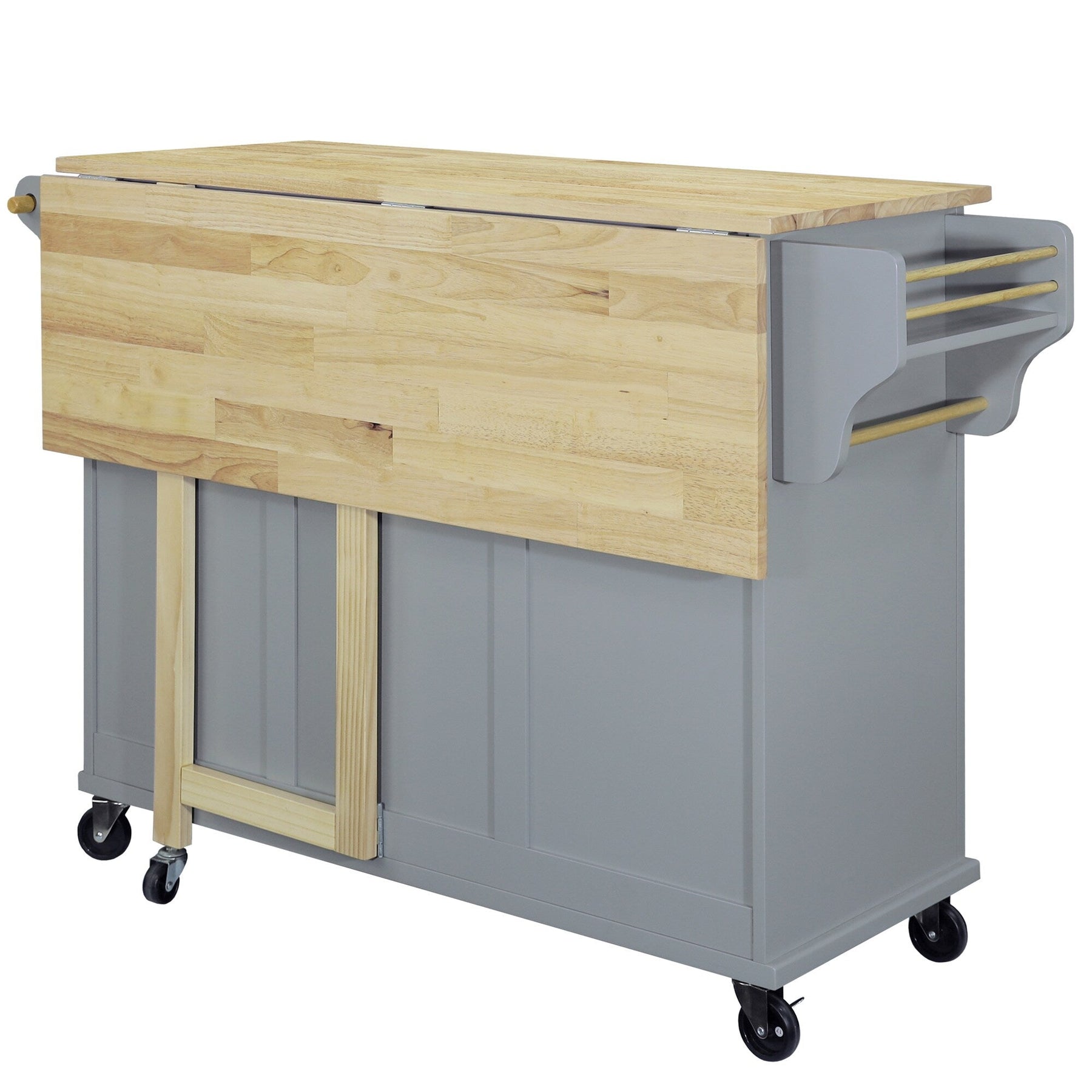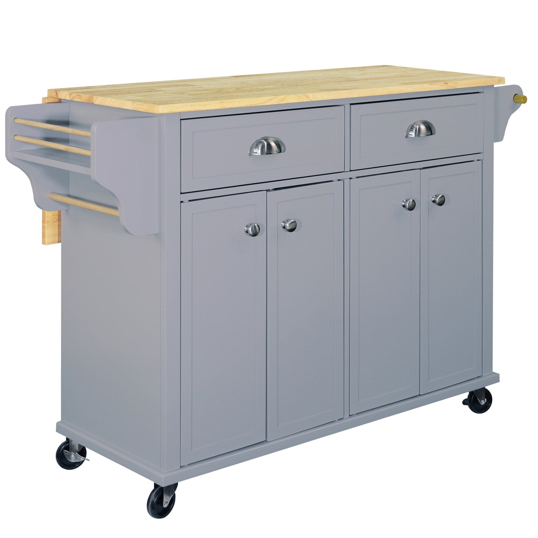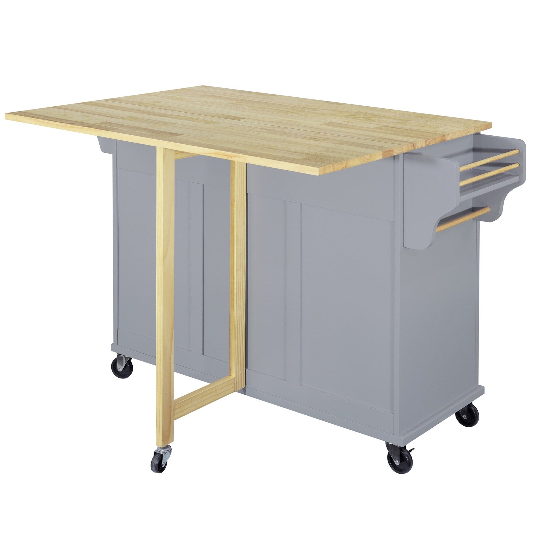 BABOOM Gray MDF Base & Wood Top Rolling Kitchen Island