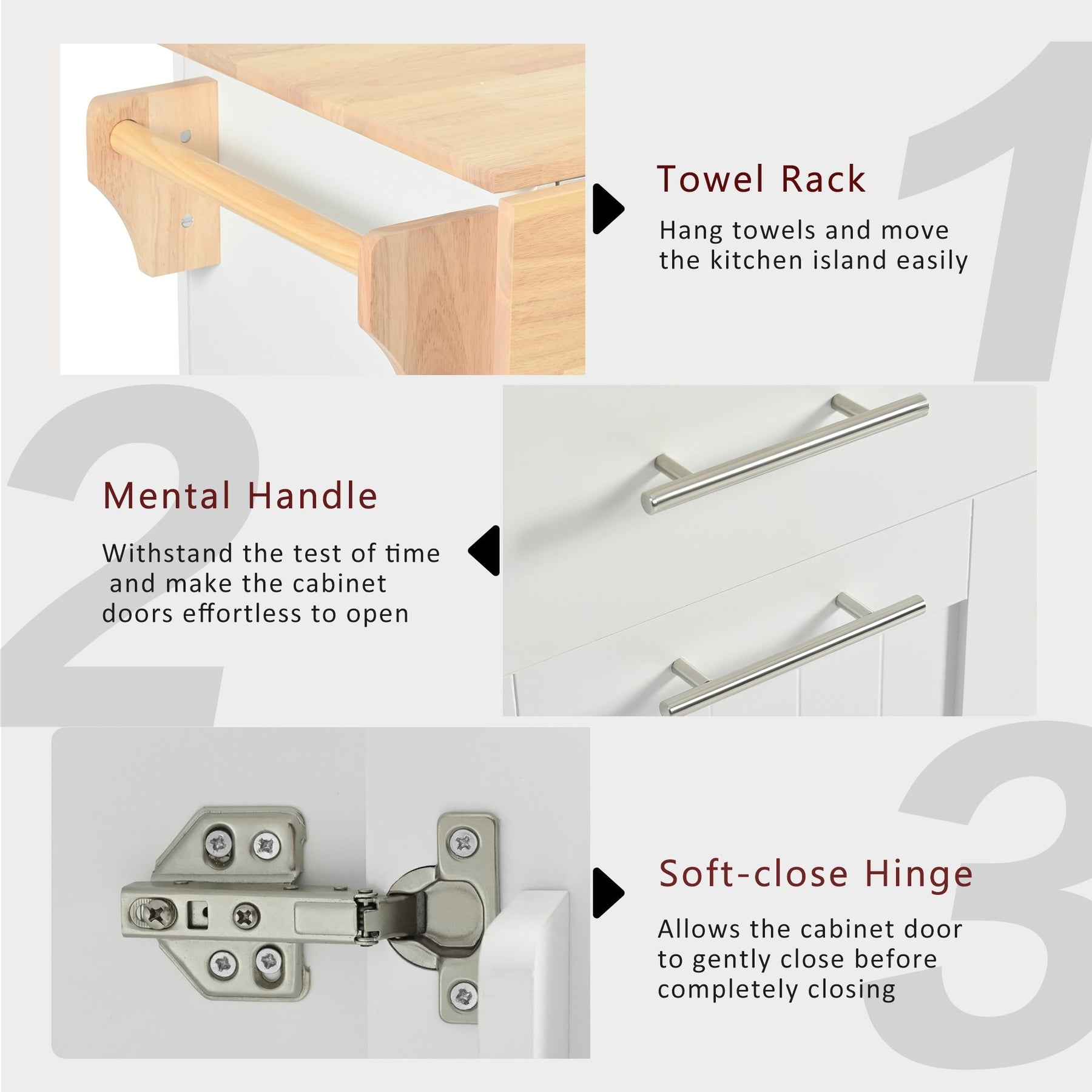 BABOOM White Mdf Base with Wood Top Rolling Kitchen Island (29.5-in x 46-in x 37-in)