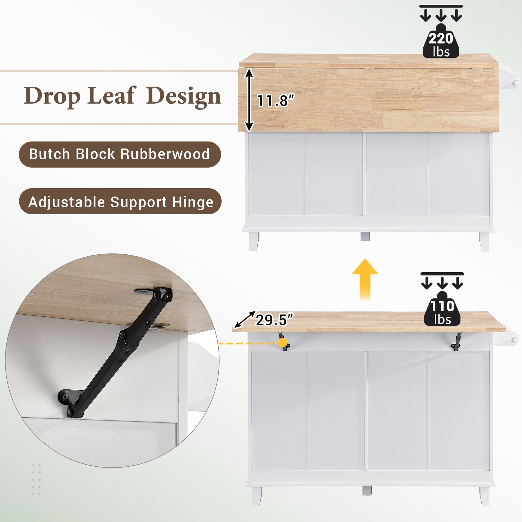 • Expandable Working Space: The drop-leaf countertop enhances workspace when needed.