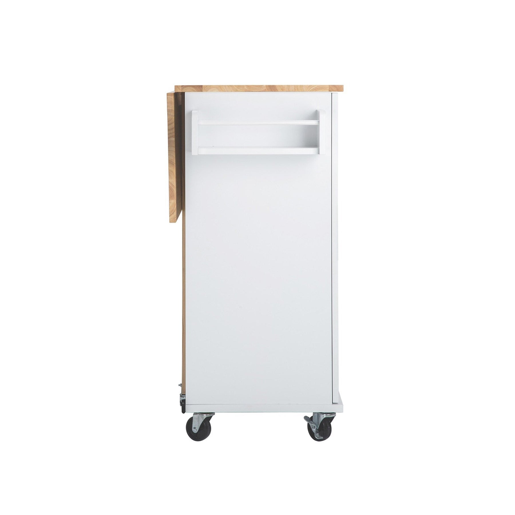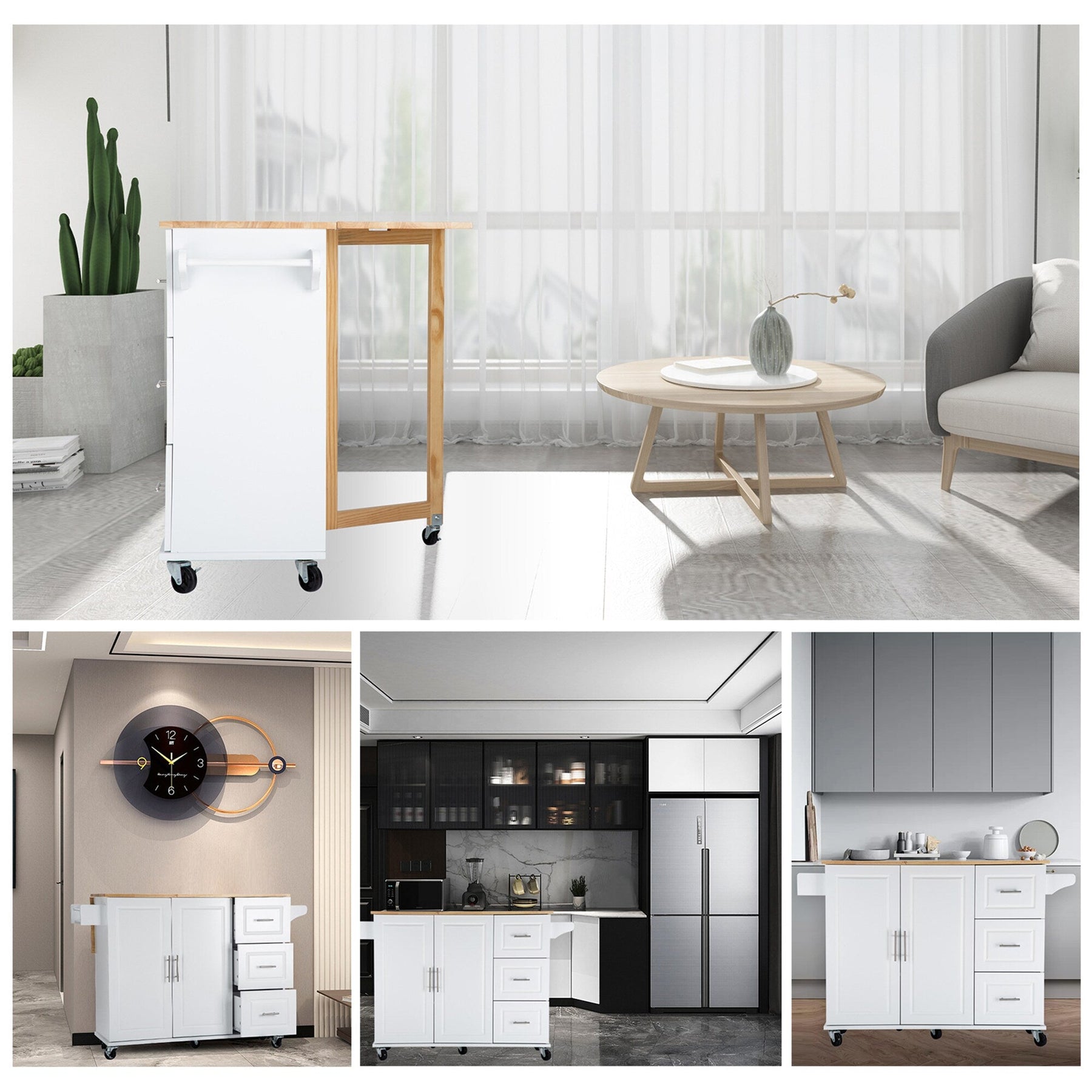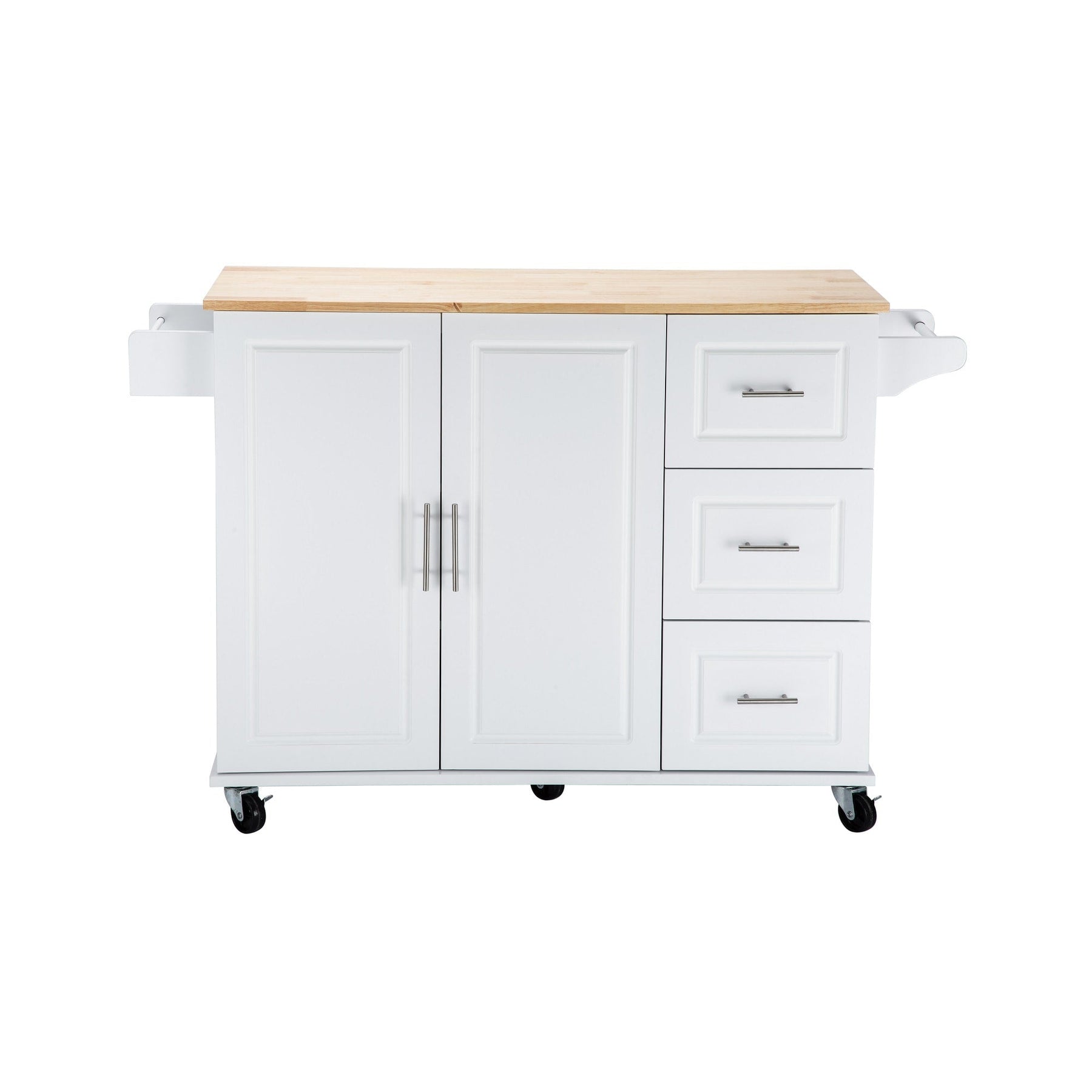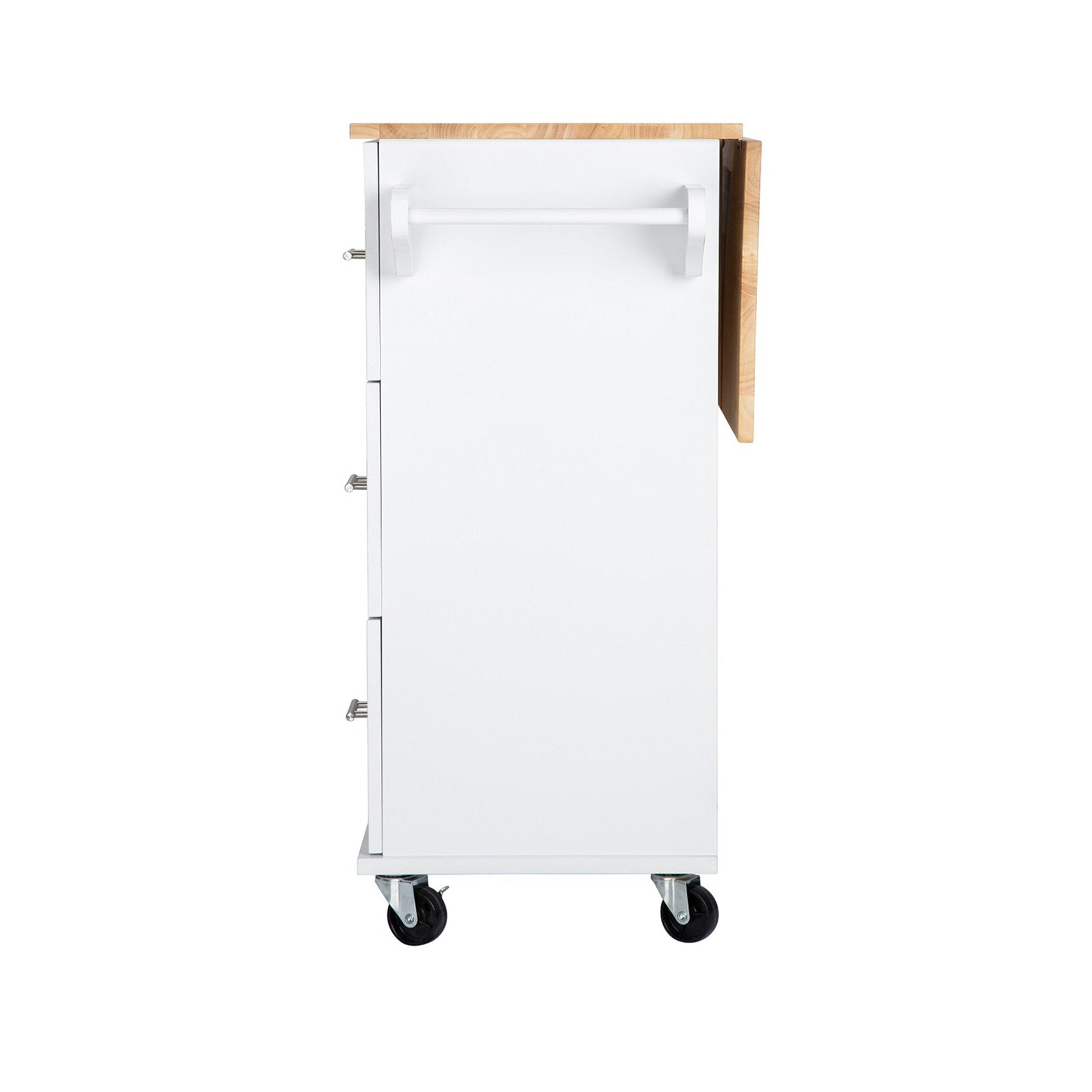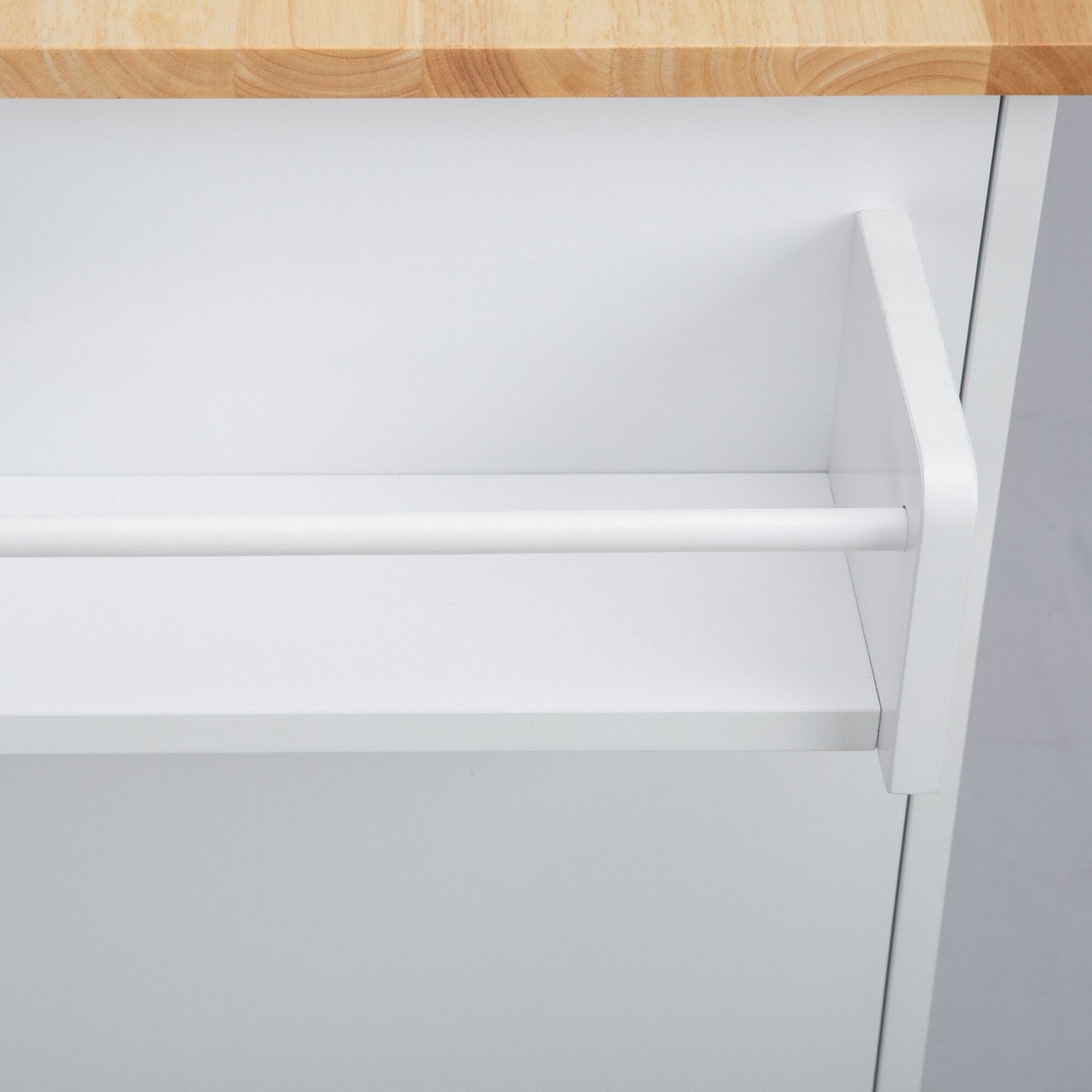 Bybafun White Kitchen Island with Wood Top and Rolling Cart
