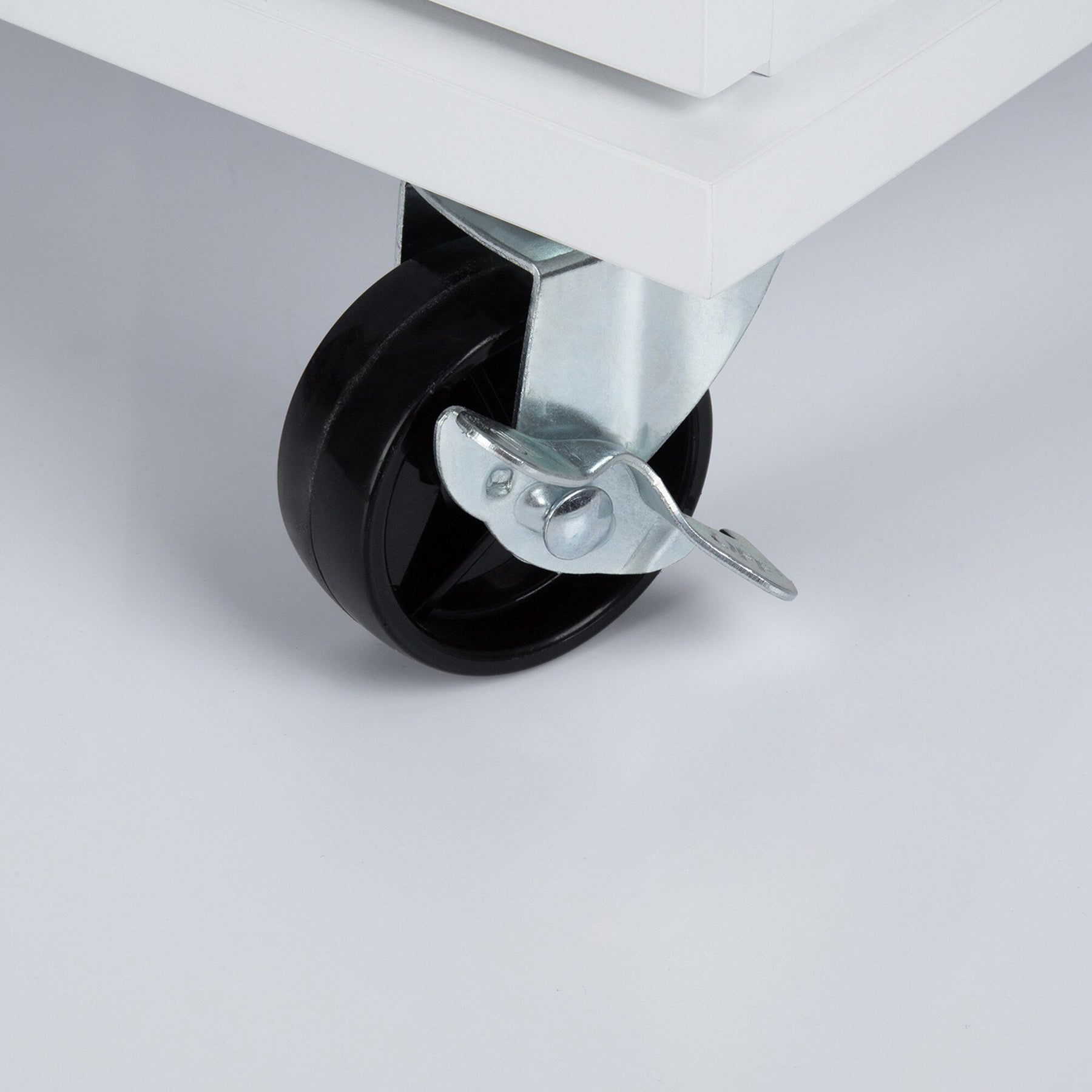 • Easy Mobility: Equipped with flexible rubber wheels, two of which lock for stability.
