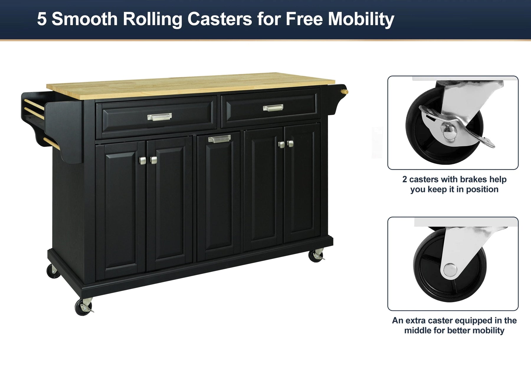 • Stylish Design: Sleek black finish with a warm wood top adds contemporary elegance to any kitchen